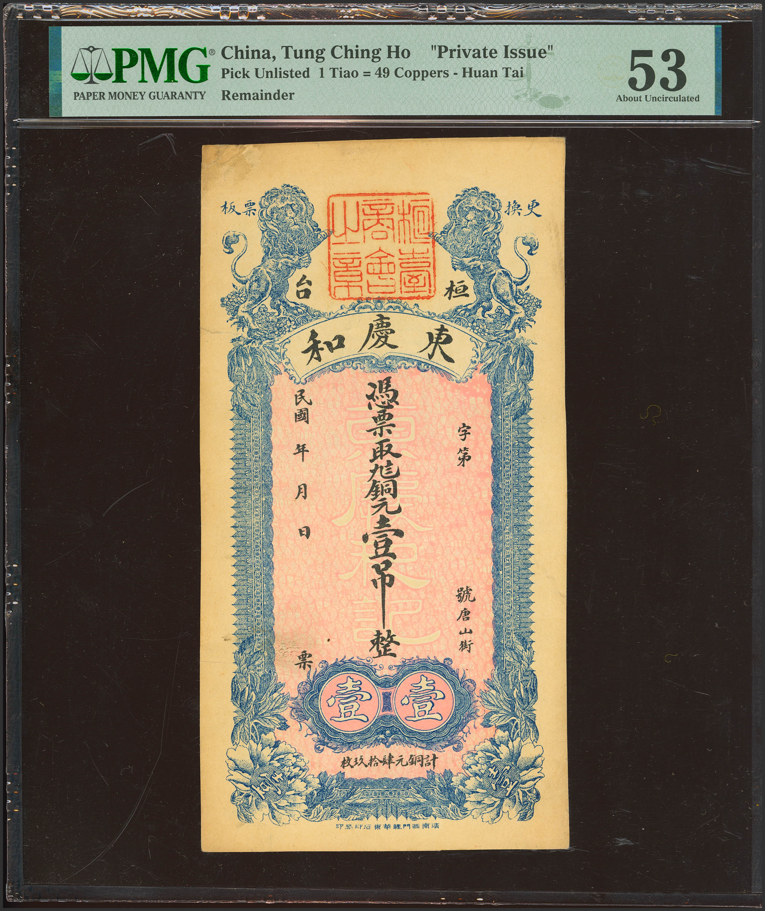 CHINA. 1000 Cash. No Date. He Xing. Private Issue. (Pick: Unlisted). PMG53 (repaired).