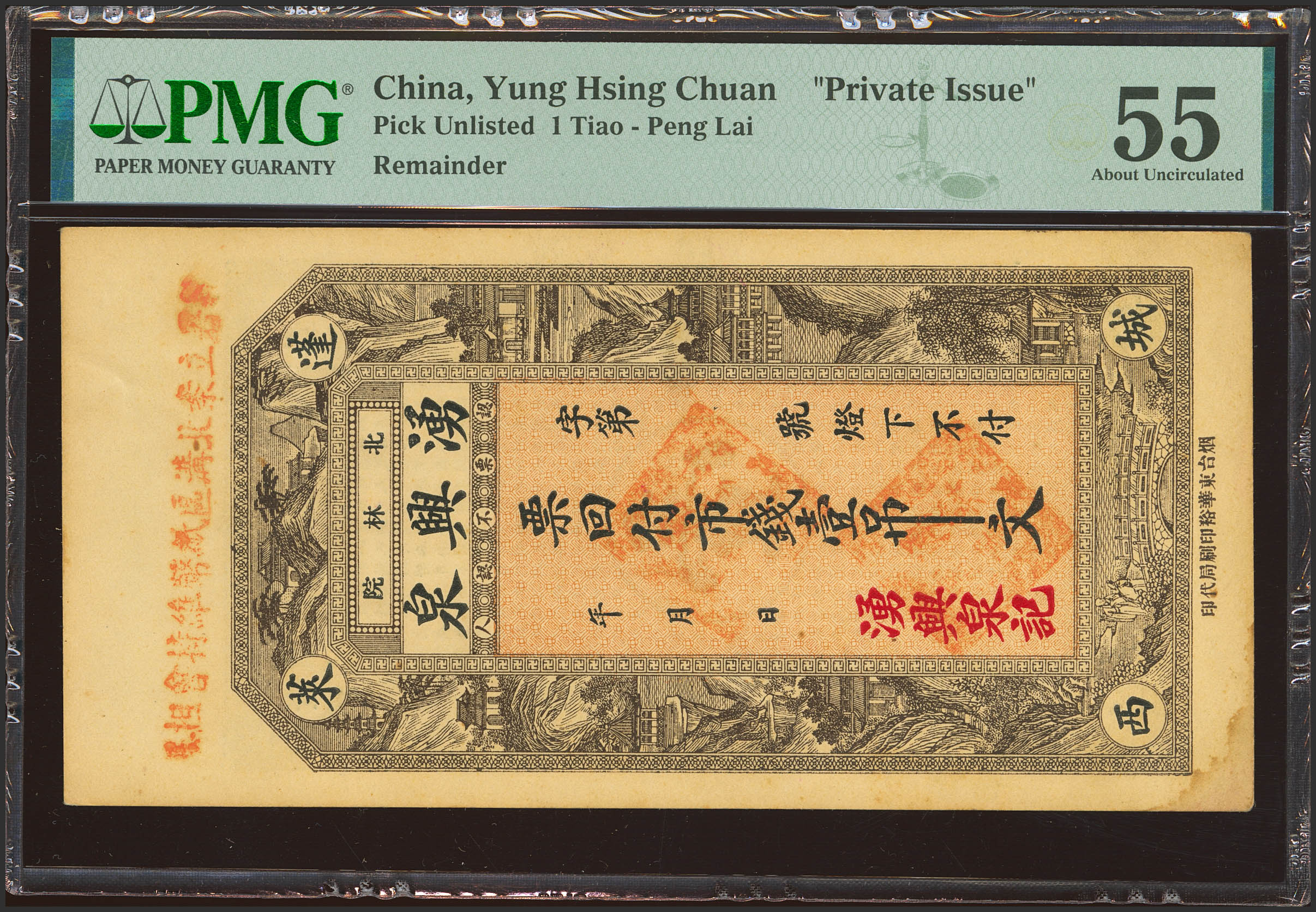 CHINA. 1 Tiao. No Date. Tang Xing Quan. Private Issue. (Pick: Unlisted). PMG55 (stains).