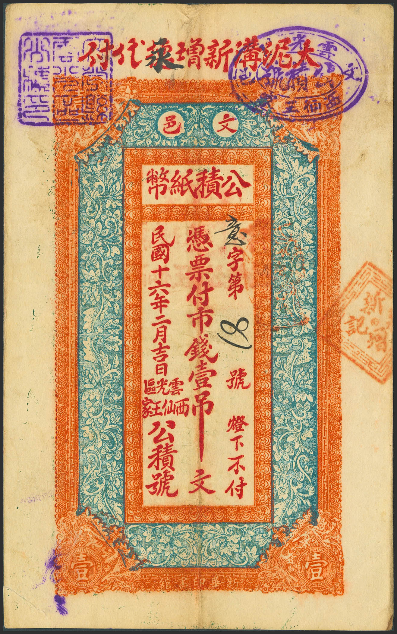 CHINA. 1 Tiao. No Date. Gung Yi. Private Issue. (Pick: Unlisted). Extremely Fine.