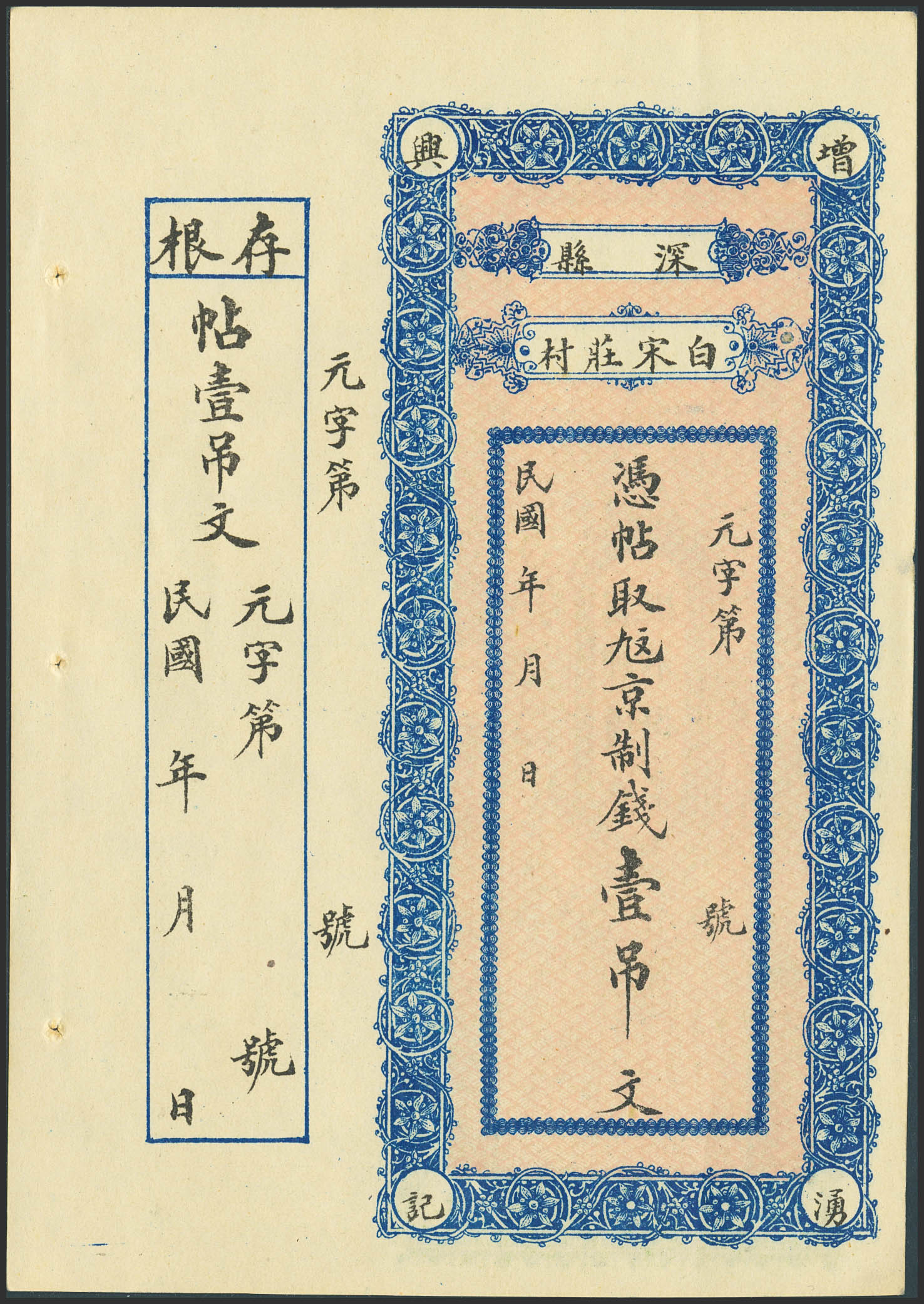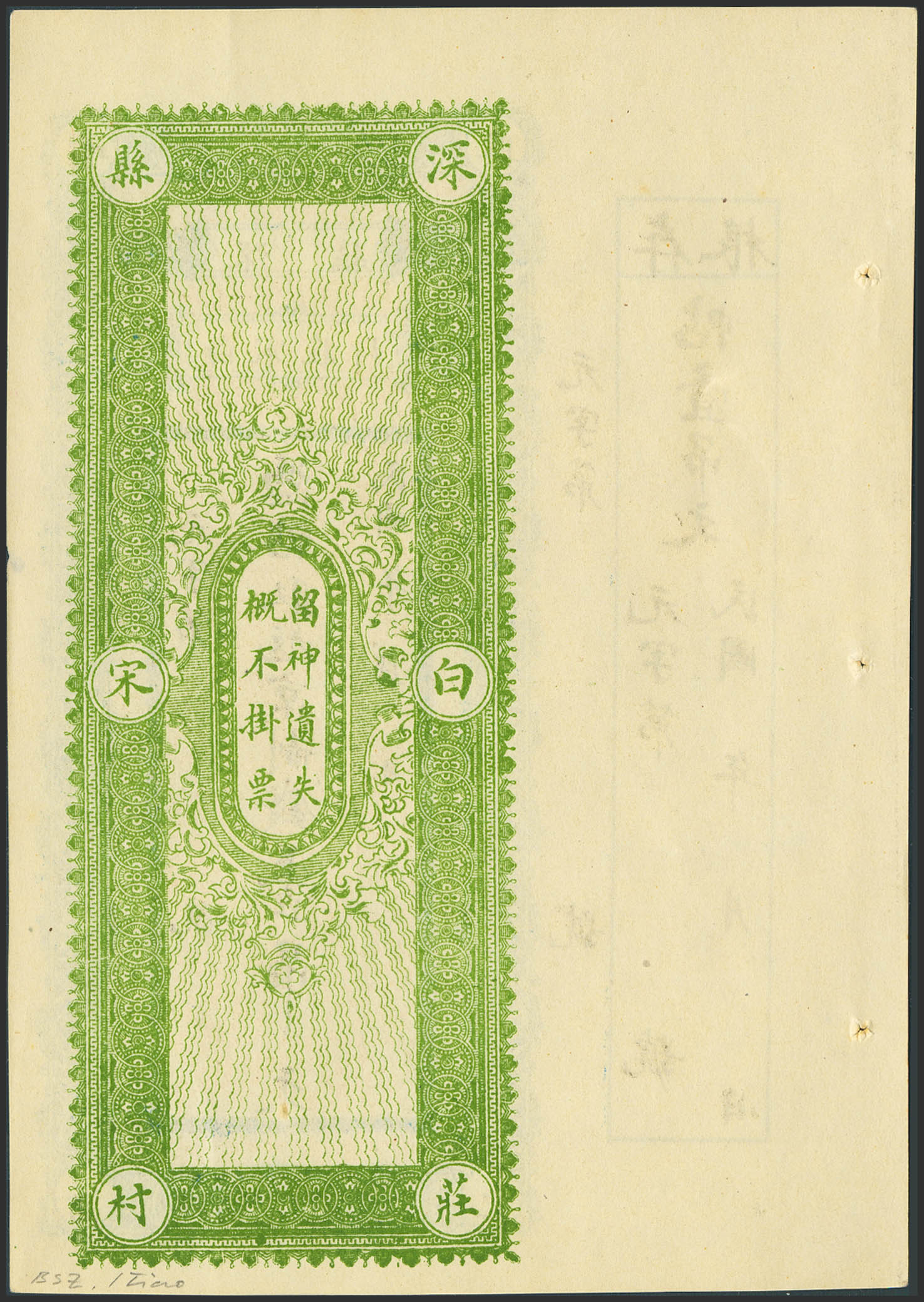 CHINA. 1 Tiao. (1935ca). Bai Song Cun Zhuang. Shenxian. Private Issue. (Pick: Unlisted). Less than Uncirculated.