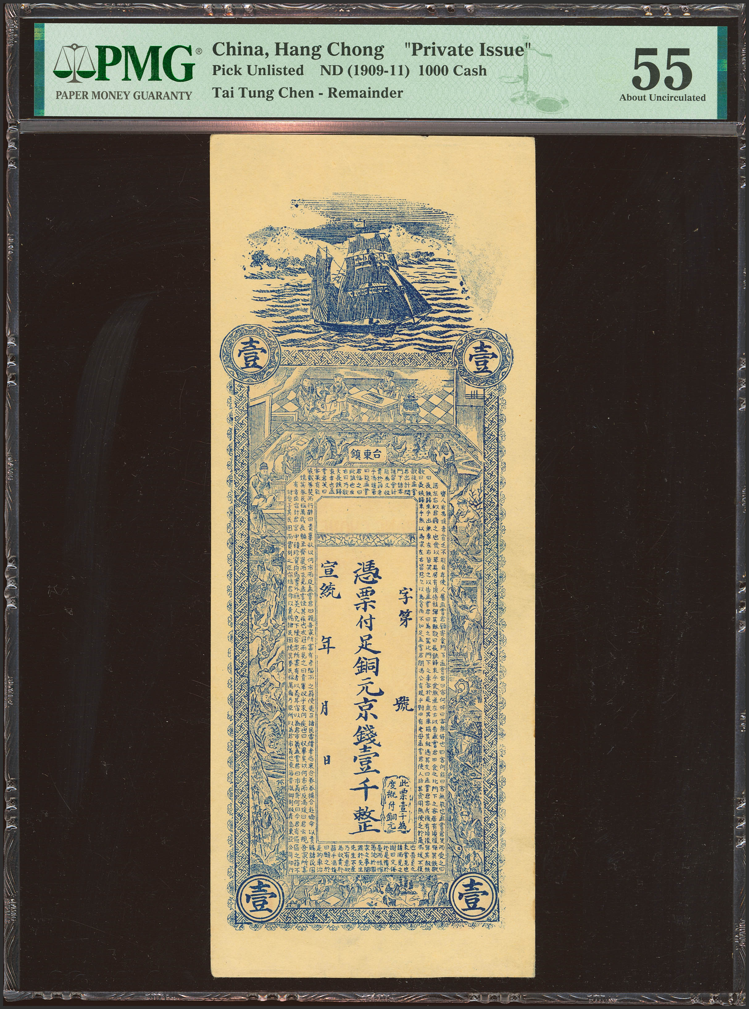 CHINA. 1000 Cash. (1908ca). Gu Cheng Tang. Private Issue. Remainder. (Pick: Unlisted). PMG55.