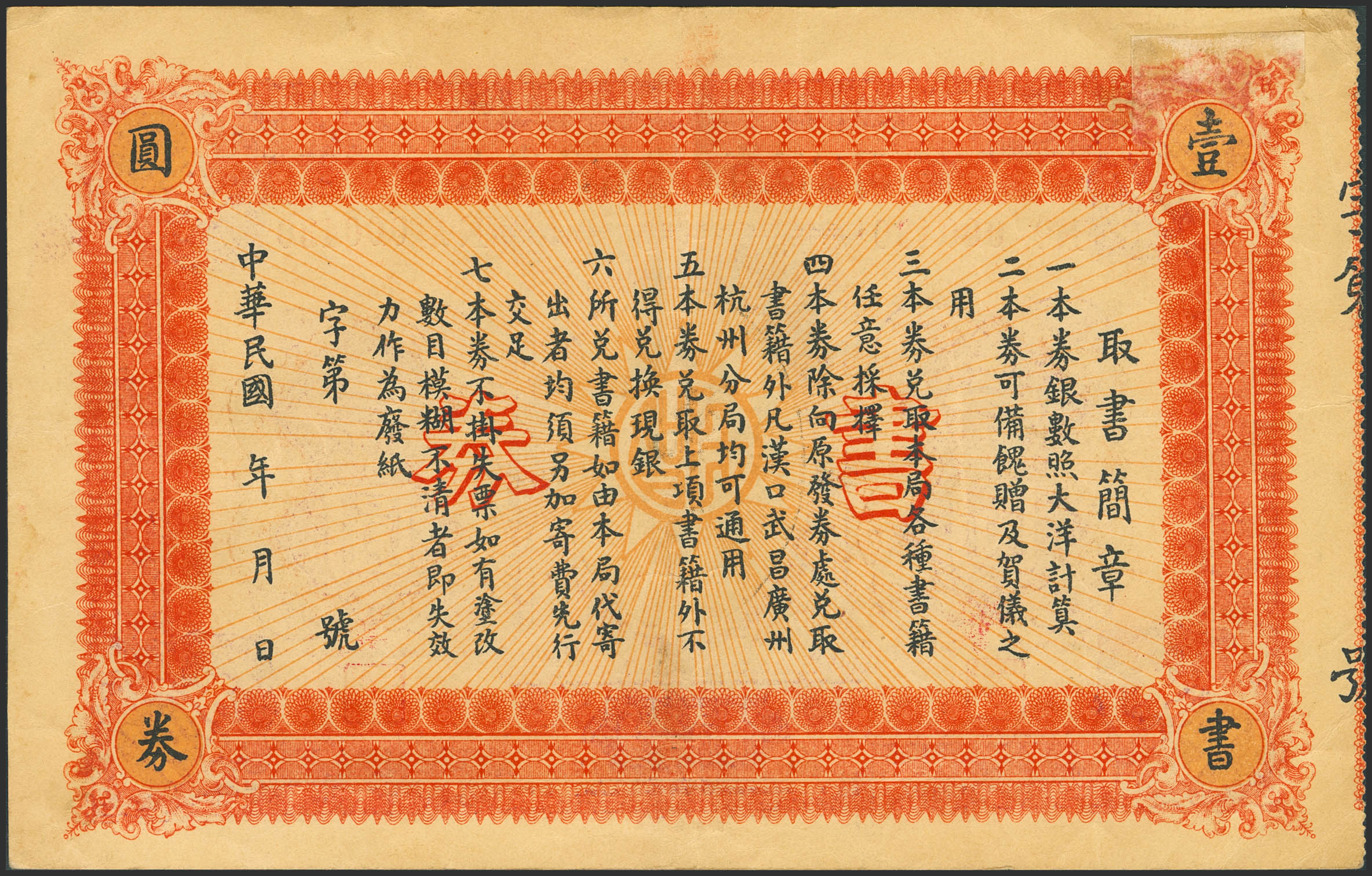 CHINA-BONDS. 1 Yuan. No Date. Siyi Kunjie Limited. Saving Bond. (Pick: Unlisted). More than Extremely Fine.