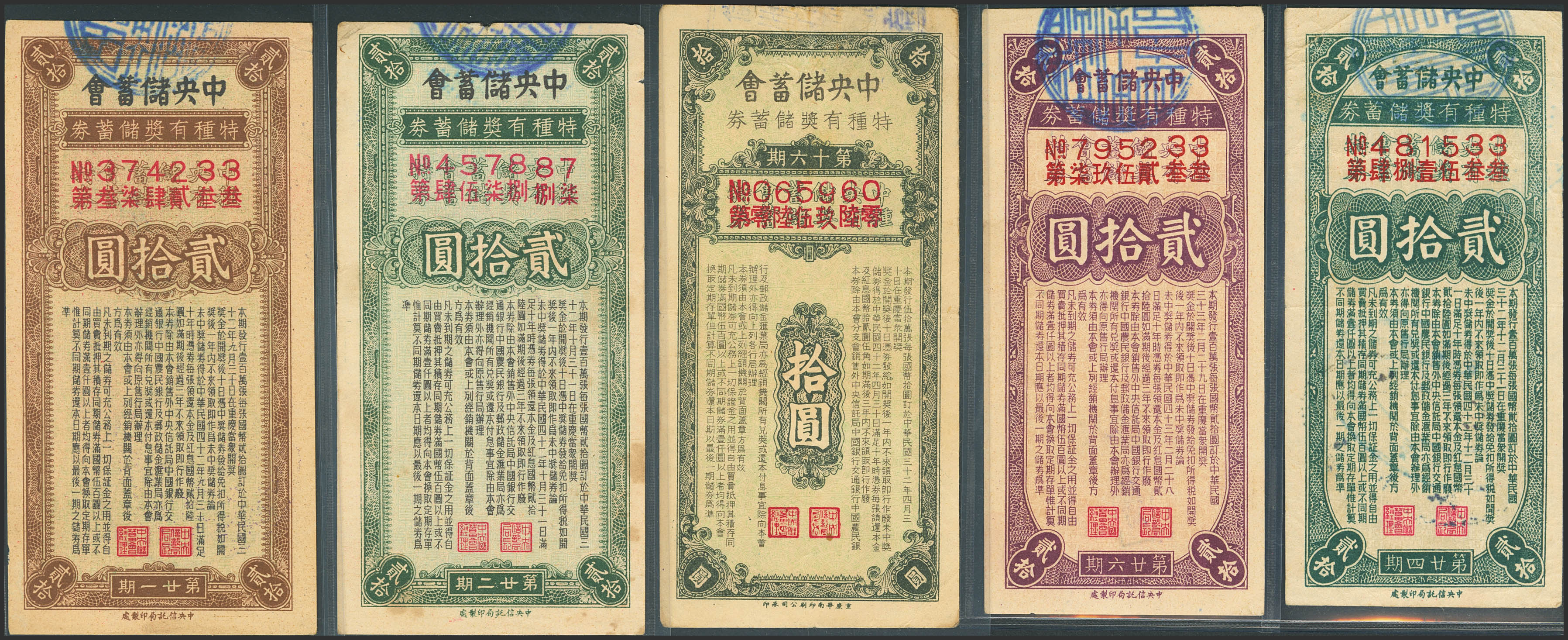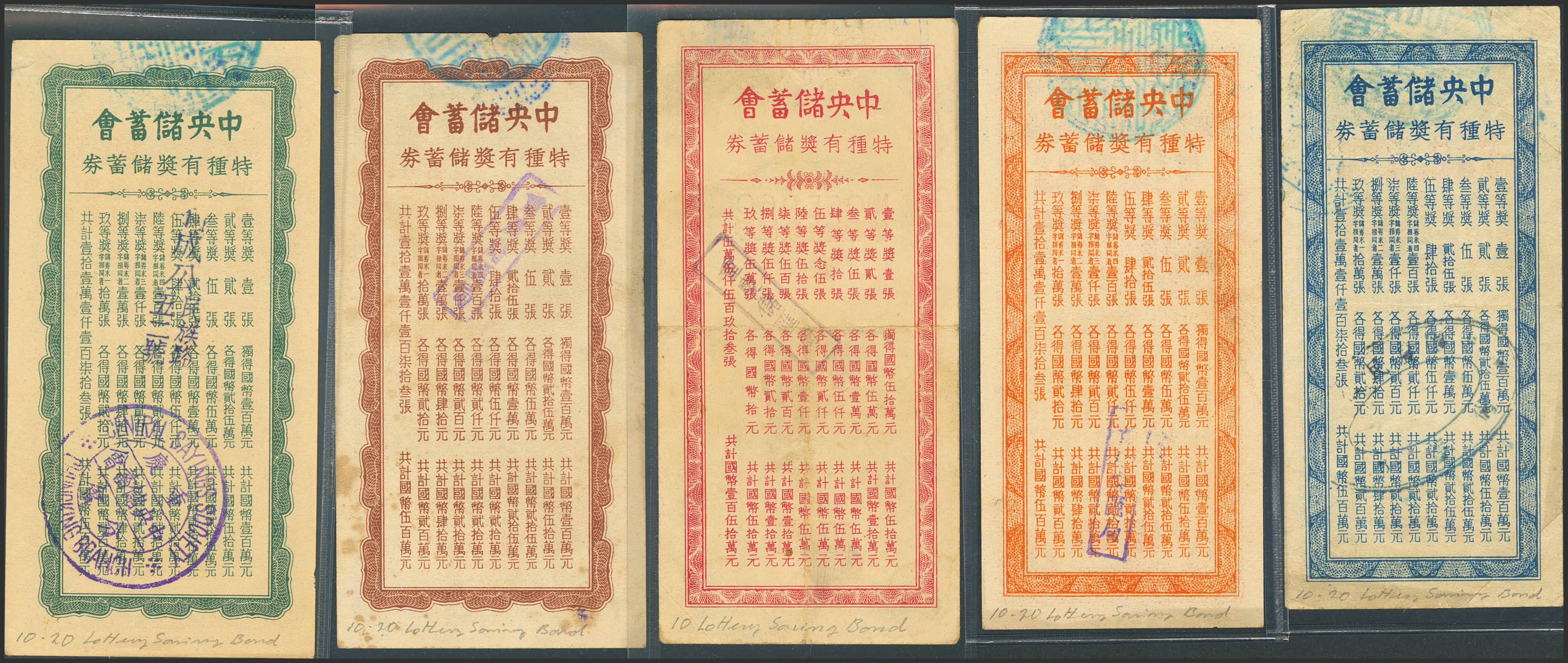 CHINA-BONDS. Lot of 5 notes. No Date. Chinese Savings Society. Zhonghua Chuxu Hui. Saving Bonds. (Pick: Unlisted). Very Fine to Almost Uncirculated.