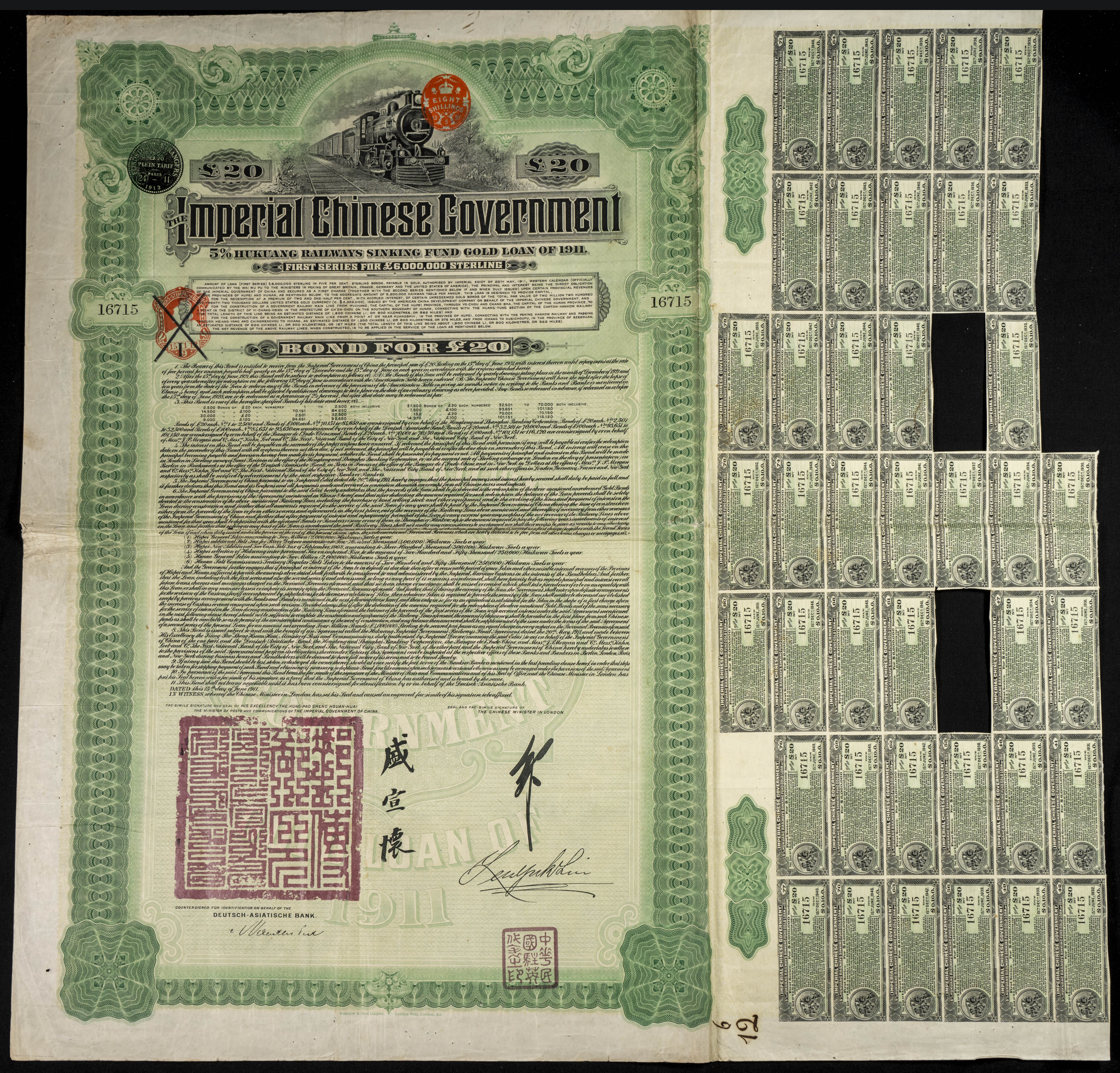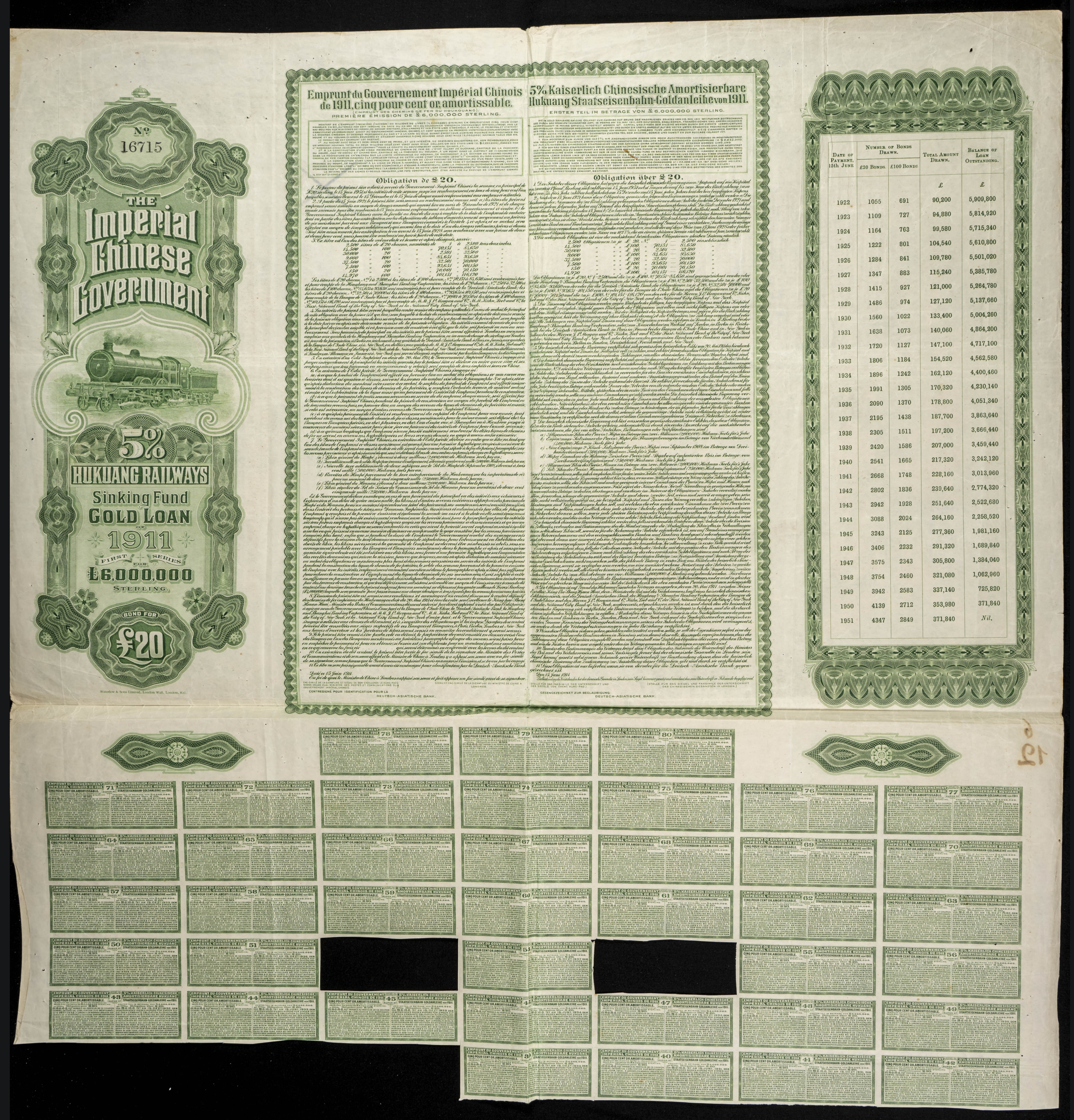 CHINA. 20 Pounds. 1911. Imperial Chinese Government. Hukuang Railways Gold Loan. (Pick: Unlisted). More than Extremely Fine.