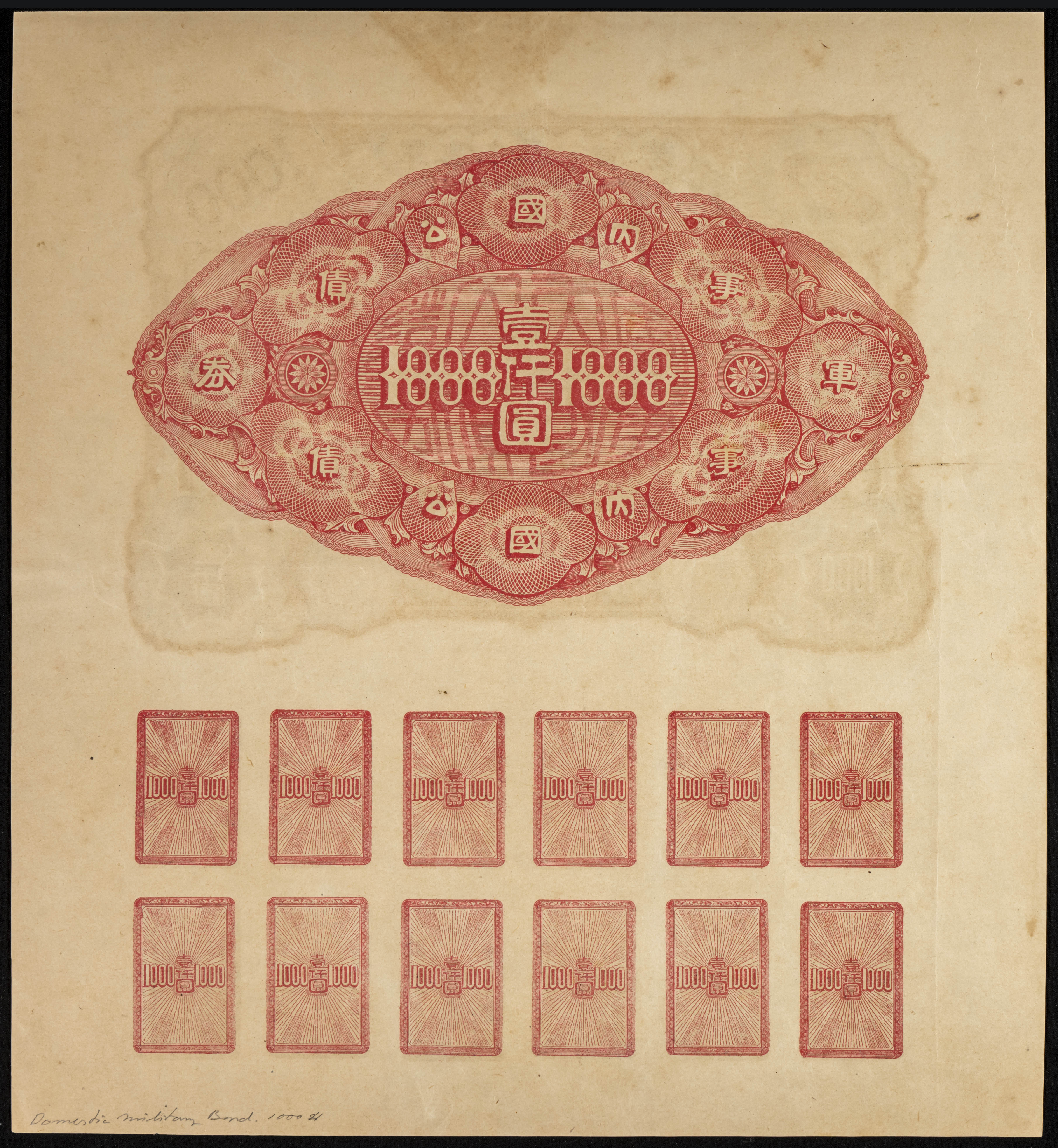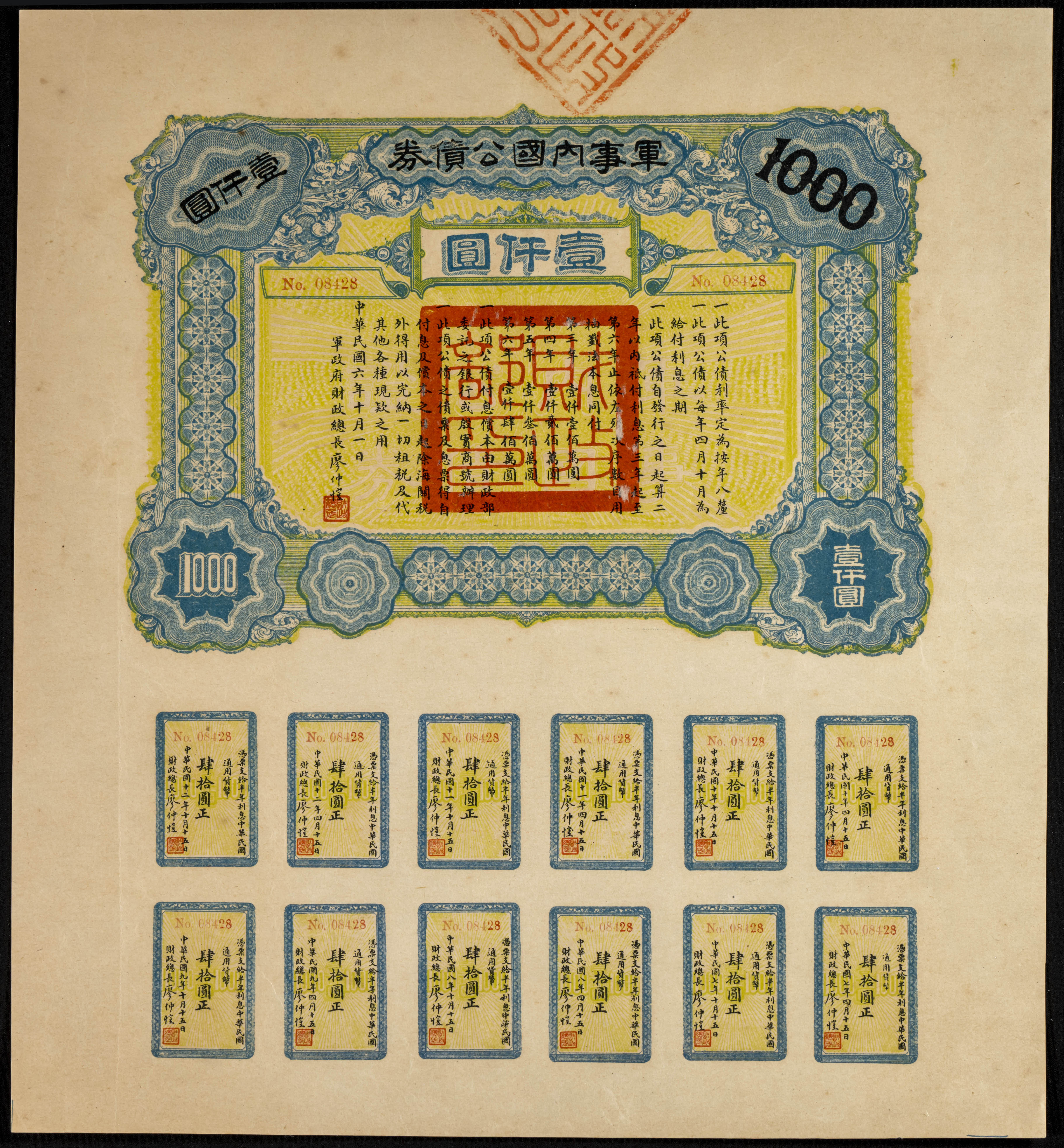 CHINA. 1000 Yuan. 1917. Domestic Military Loan. (Pick: Unlisted). More than Extremely Fine.