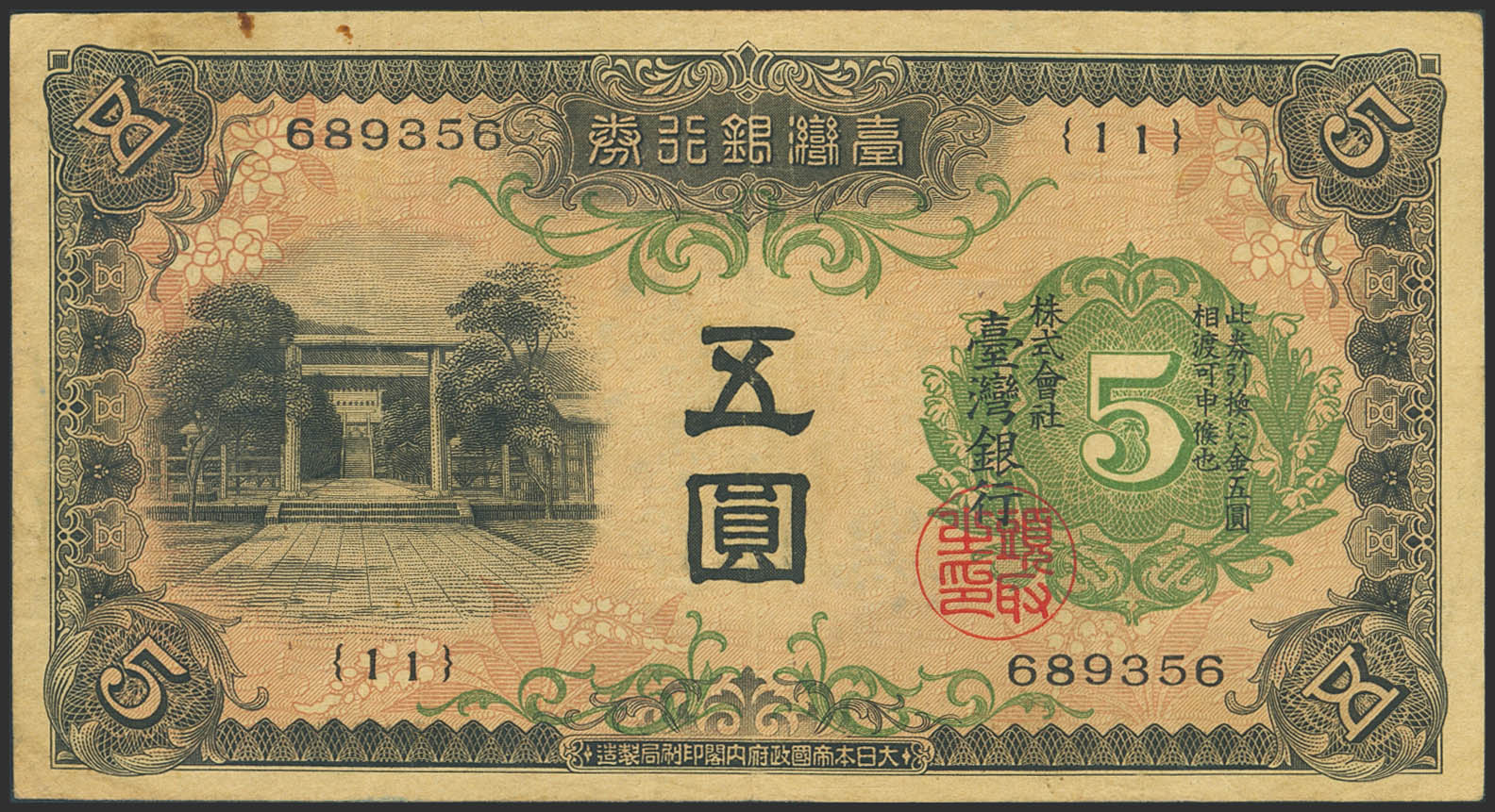 TAIWAN. 5 Yen. (1934ca). Bank of Taiwan. (Pick: 1926a). Very Fine.