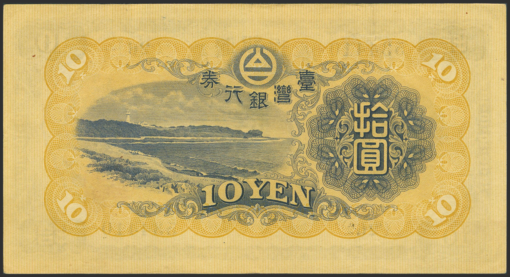TAIWAN. 10 Yen. (1932ca). Bank of Taiwan. (Pick: 1927a). More than Very Fine.