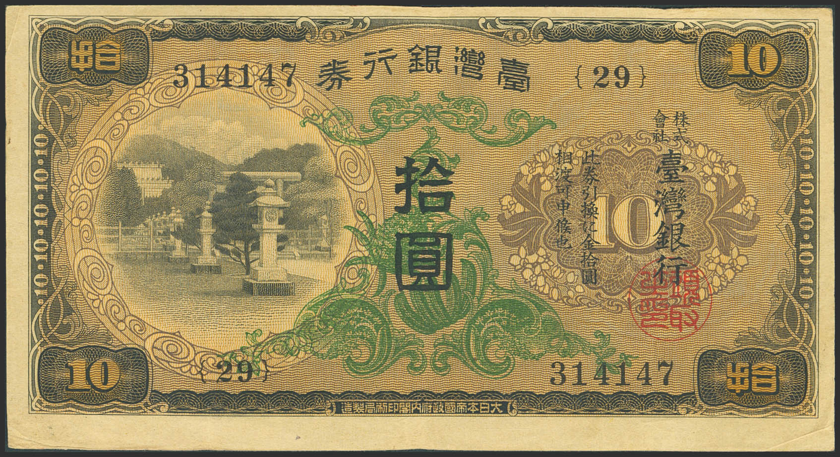 TAIWAN. 10 Yen. (1932ca). Bank of Taiwan. (Pick: 1927a). Extremely Fine.