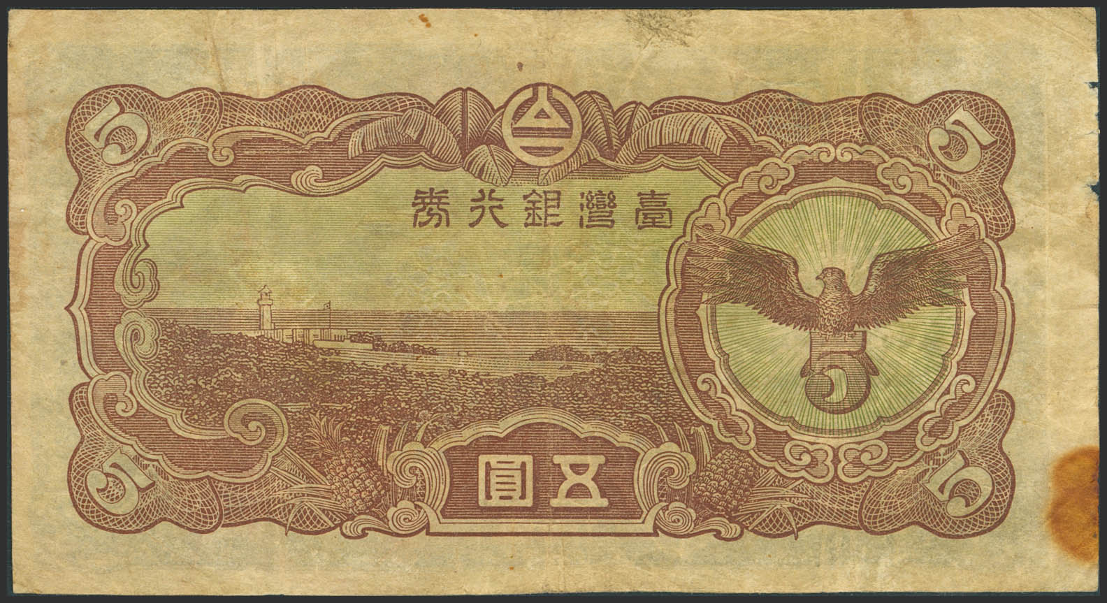 TAIWAN. 5 Yen. (1944ca). Bank of Taiwan. (Pick: 1929a). More than Fine.
