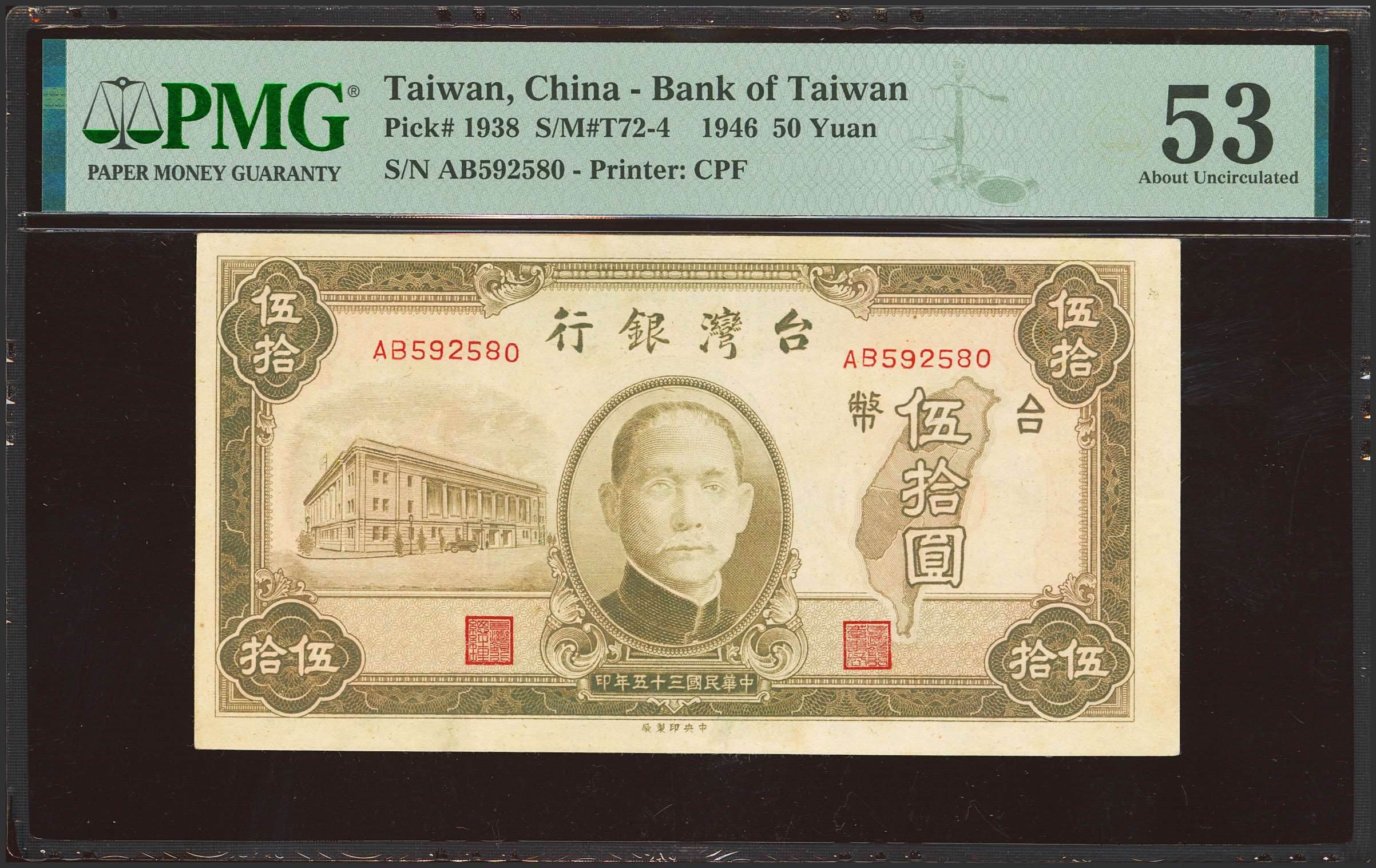TAIWAN. 50 Yuan. 1946. Bank of Taiwan. (Pick: 1938, SM: T72-4). PMG53.