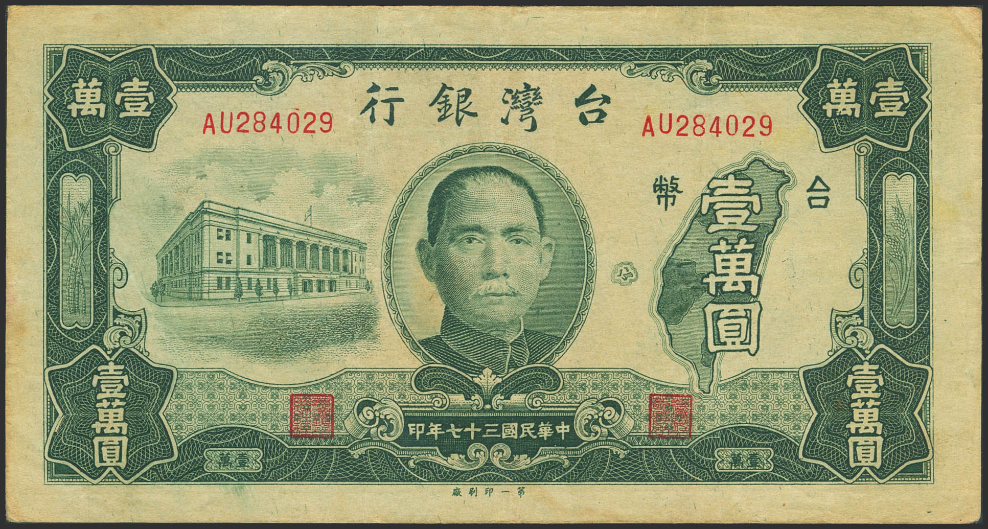 TAIWAN. 10000 Yuan. 1948. Bank of Taiwan. (Pick: 1944). Very Fine.