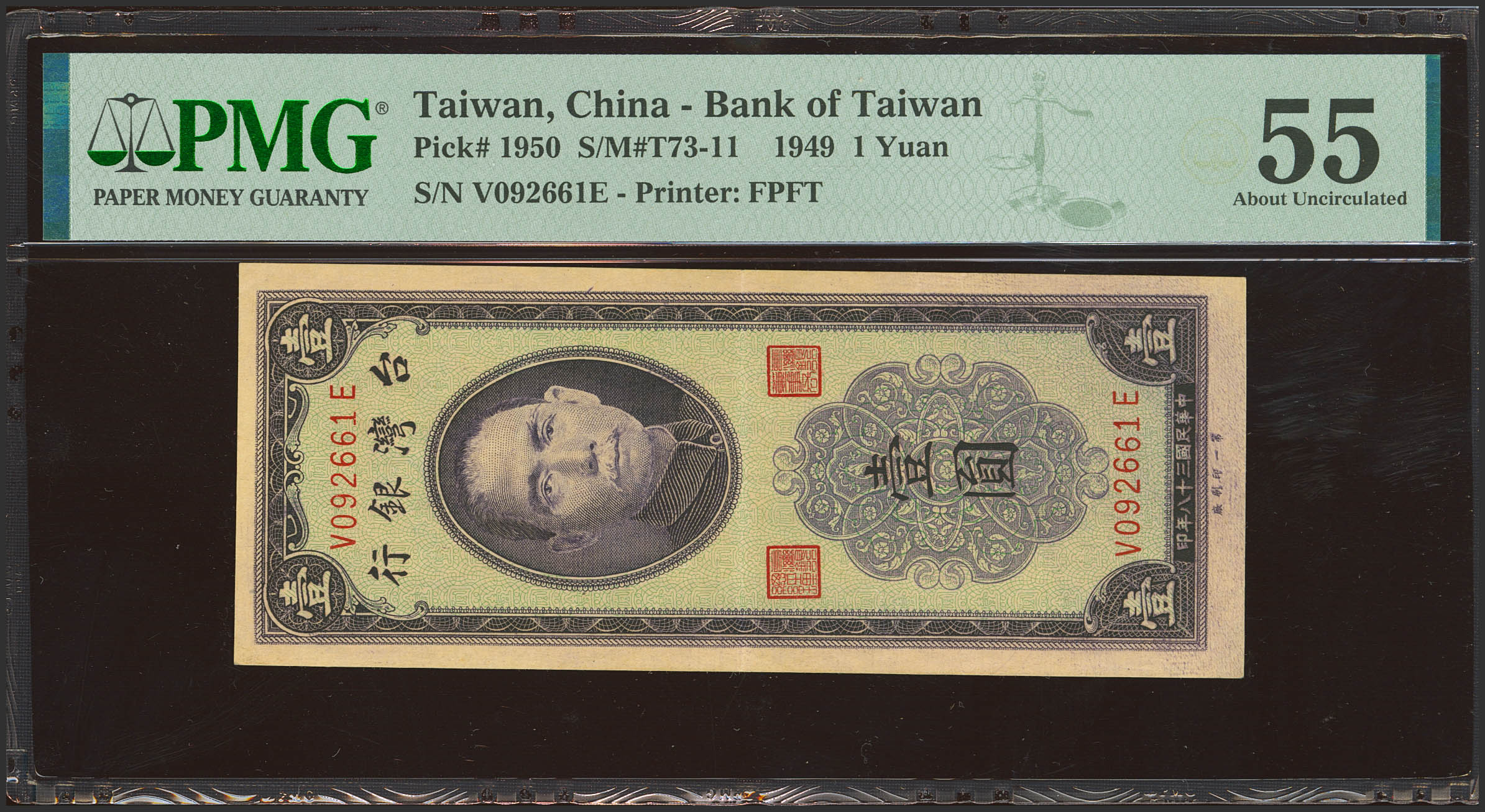 TAIWAN. 1 Yuan. 1949. Bank of Taiwan. (Pick: 1950, SM: T73-11). PMG55 (minor rust).