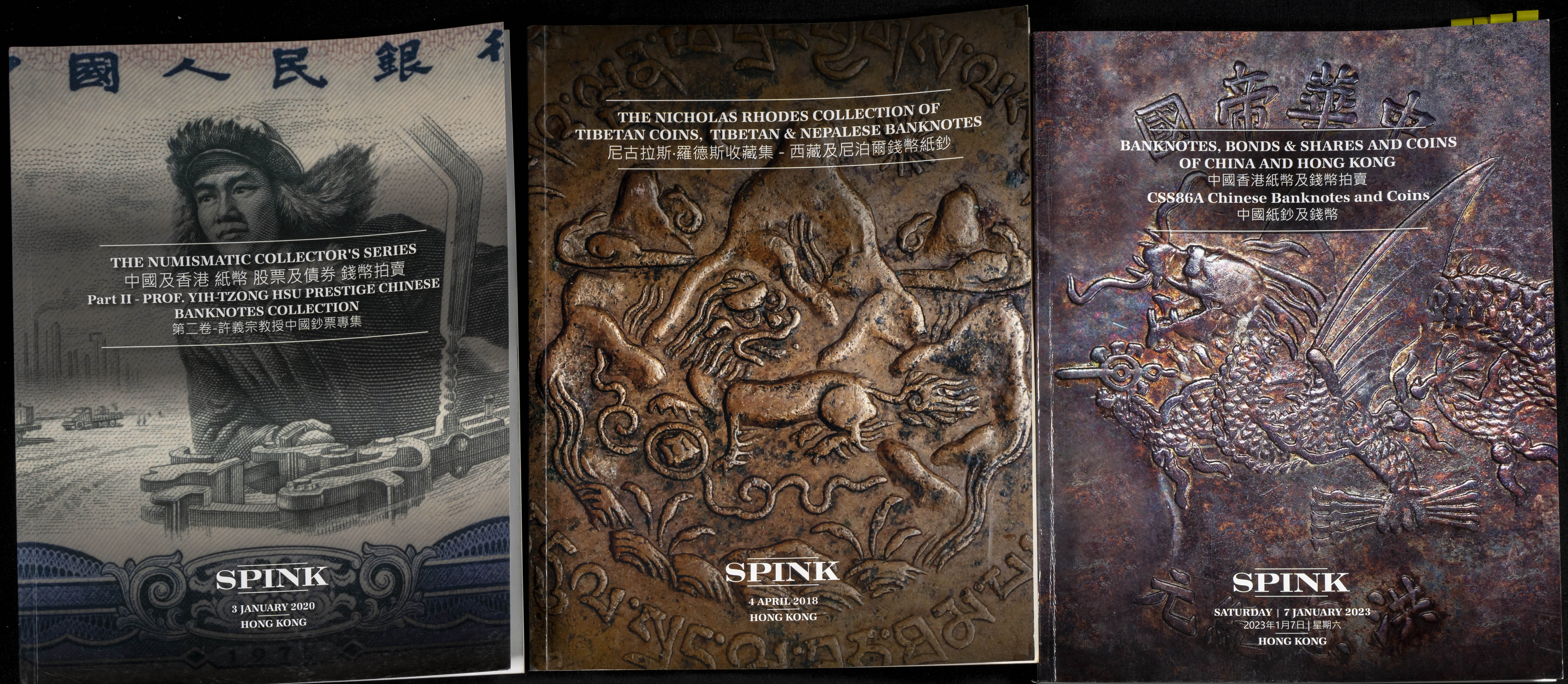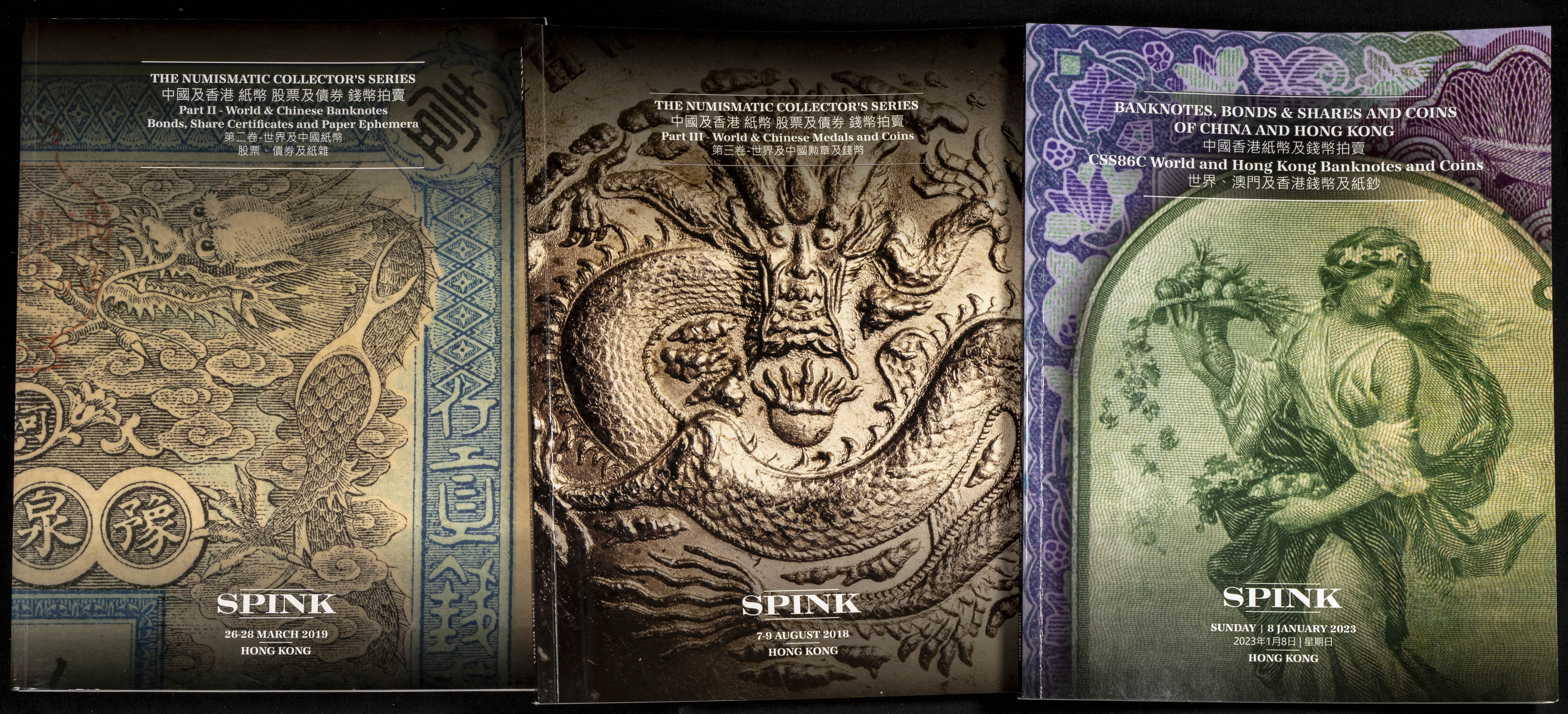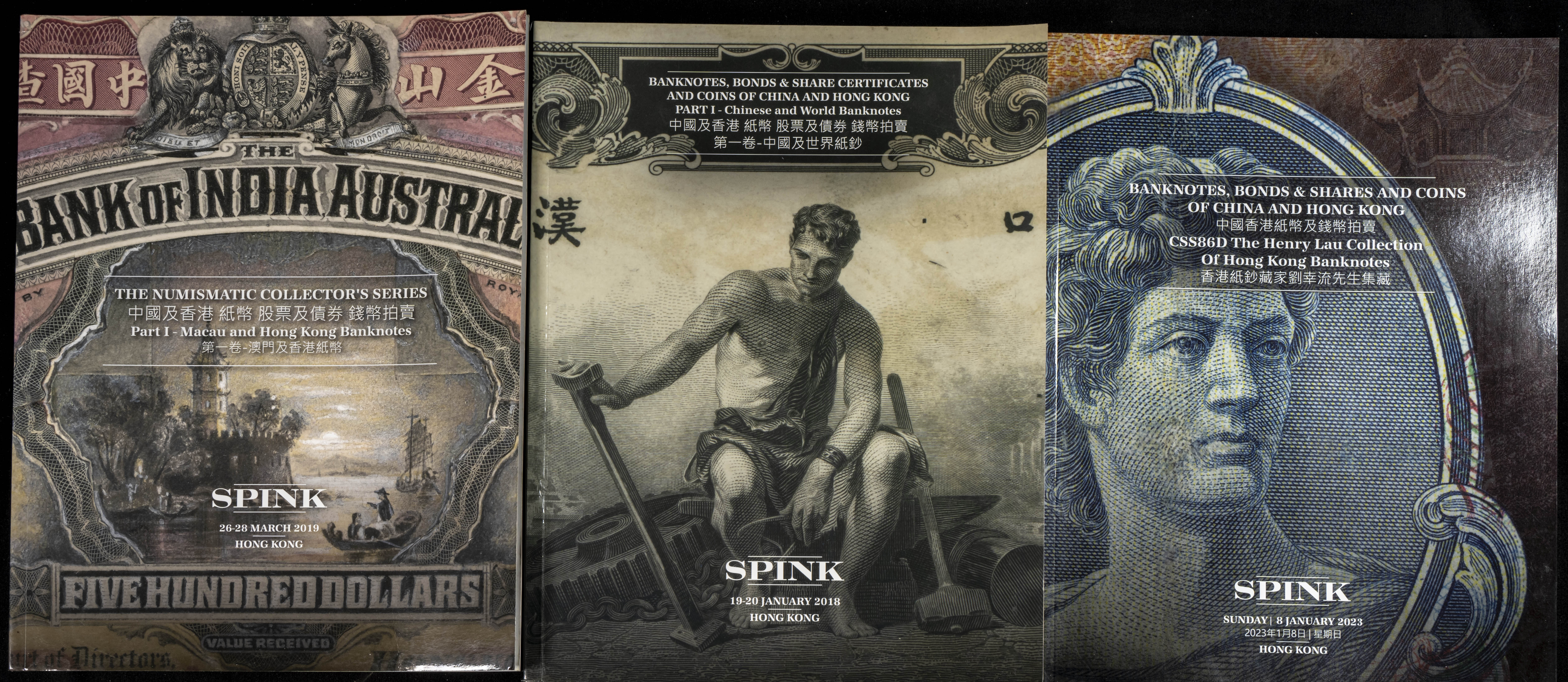 Set of 24 Spink Hong Kong auction catalogues of numismatic and numismatic auctions held between 2018 and 2023. TO EXAMINE.