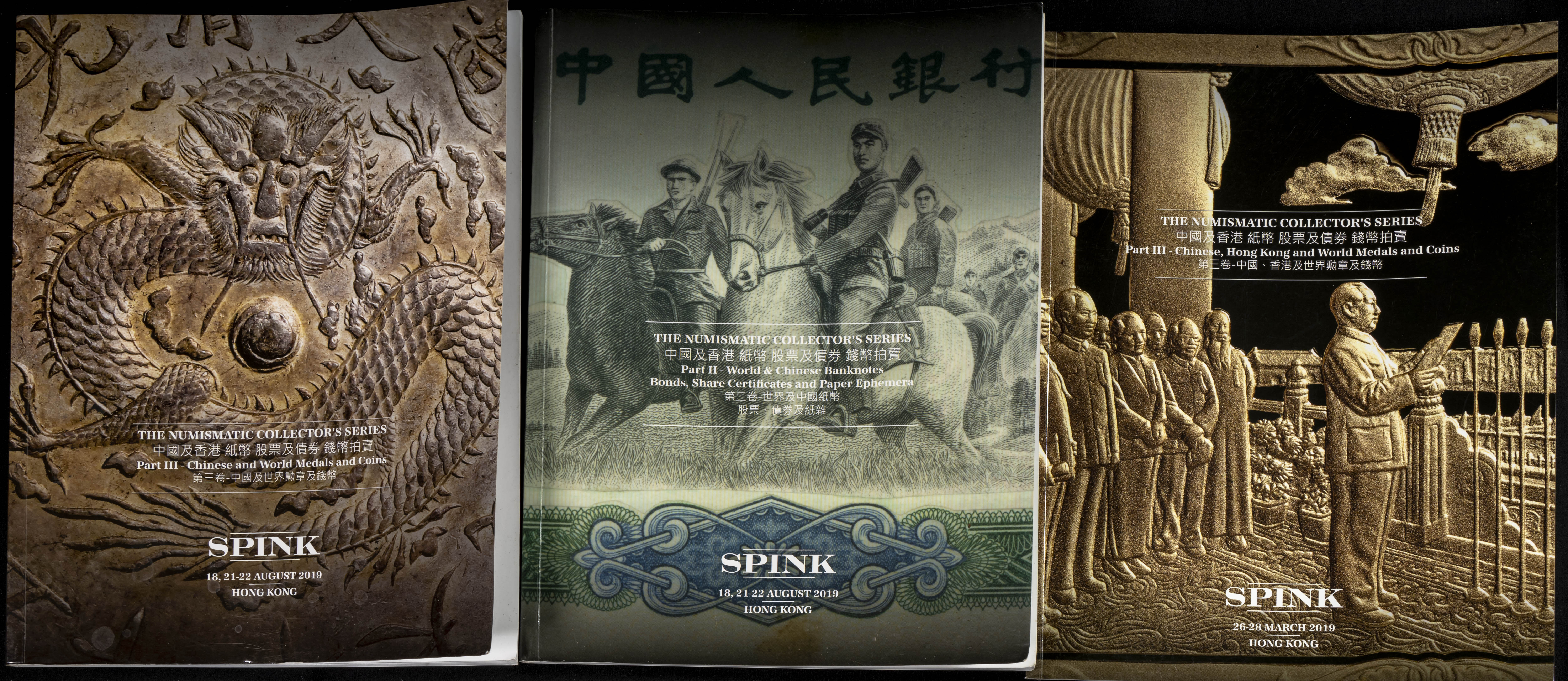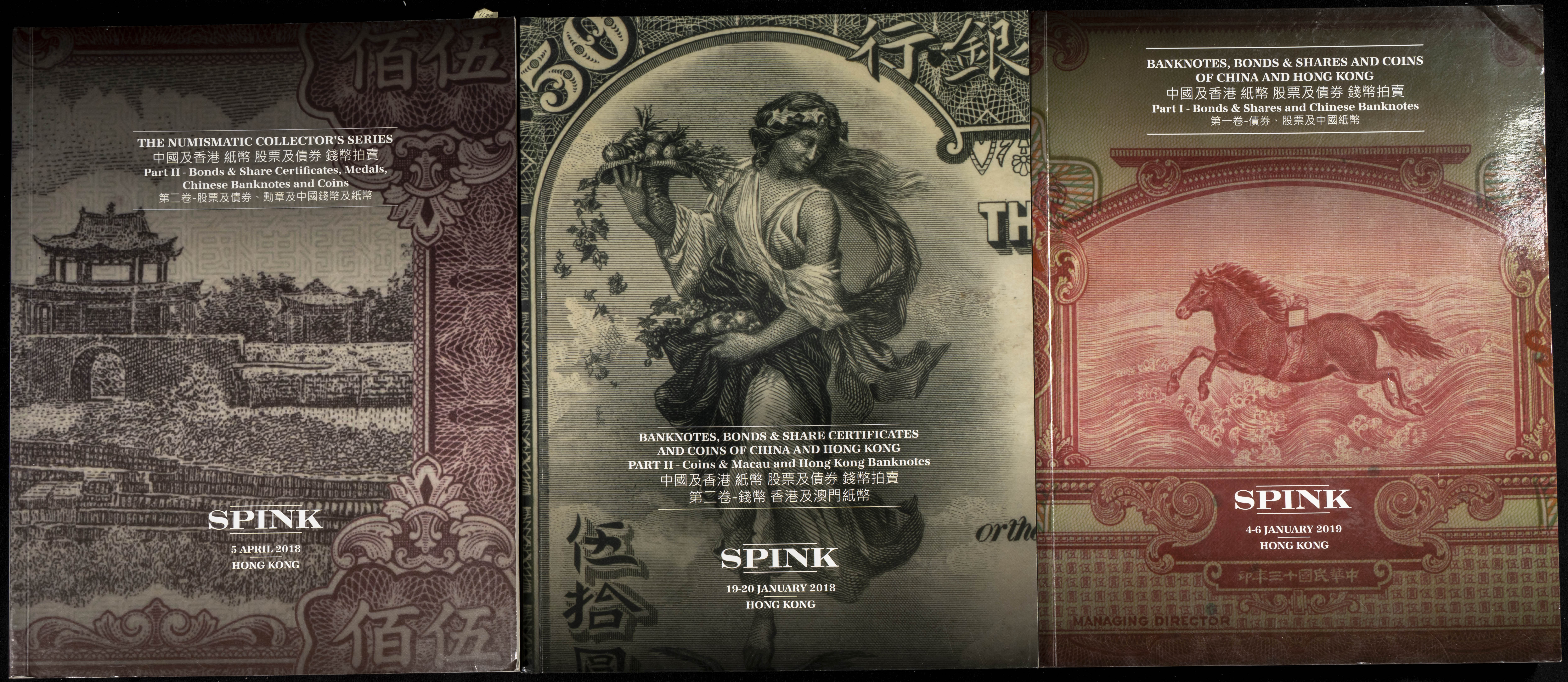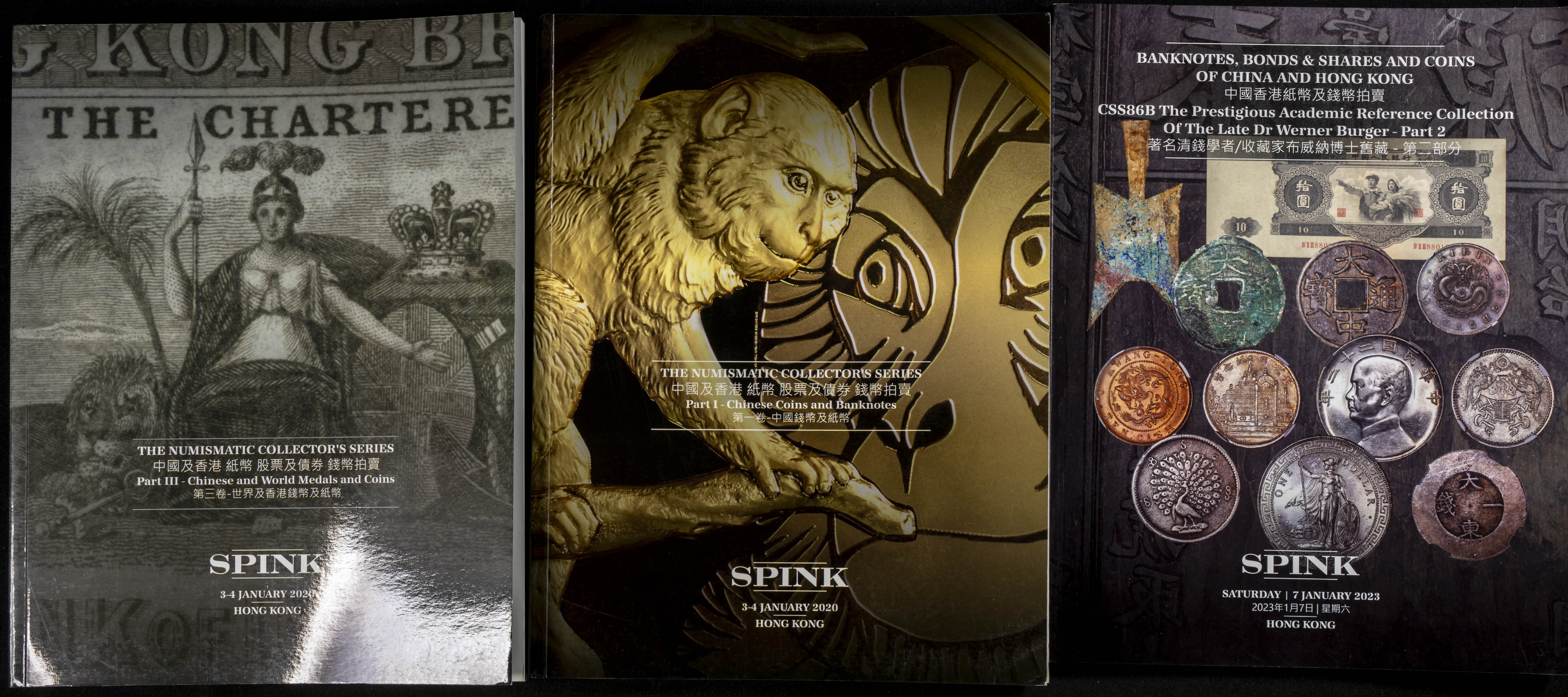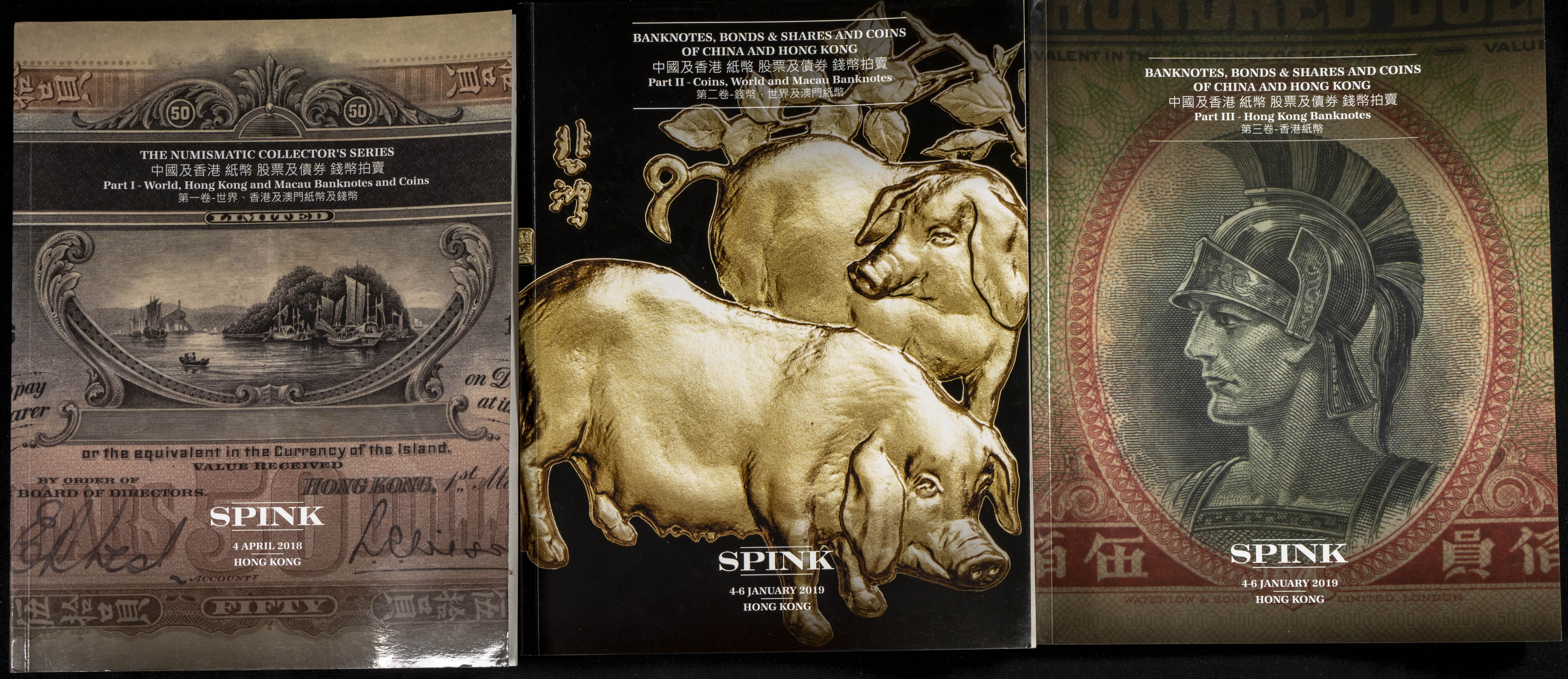 Set of 24 Spink Hong Kong auction catalogues of numismatic and numismatic auctions held between 2018 and 2023. TO EXAMINE.