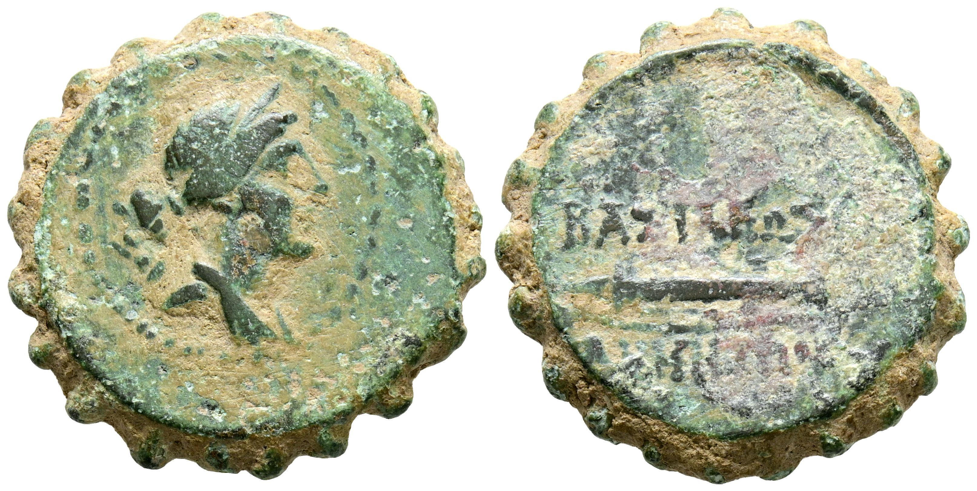 REINO SELEUCIDA, Demetrios I Sóter. Ae22 (Ae. 9,05g/22mm). 162-150 a. C. Antioquía. (HGC 9, 826). Anv: Busto diademado y drapeado de Artemisa a derecha, arco y carcaj sobre el hombro. Rev: Arco y carcaj, alrededor leyenda griega: ΒΑΣΙΛΕΩΣ ΔΗΜΉΤΡΙΟΥ. MBC.