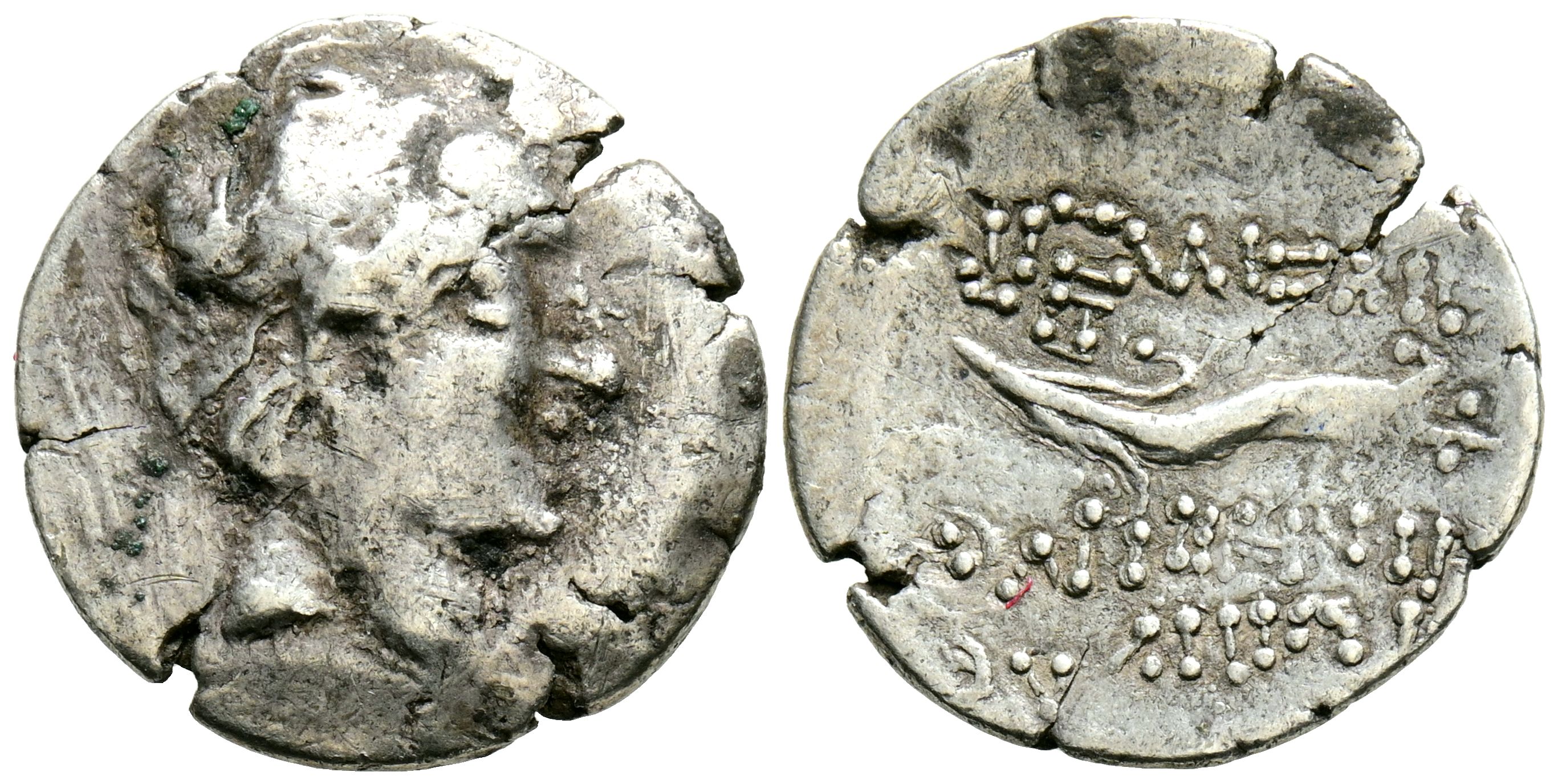 REINO SELEUCIDA, Demetrios I Soter. Dracma. (Ar. 3,17g/19mm). 152-151 a.C. Antioquía en el Orontes. (Seaby 1642.3C; HGC 9, 806). Anv: Cabeza diademada de Demetrios I a derecha. Rev: Cornucopia, en campo monograma: AΞP, alrededor leyenda: ΒΑΣΙΛΕΩΣ ΔΗΜΗΤΡΙΟΥ ΣΩΤΗPΟΣ. BC.