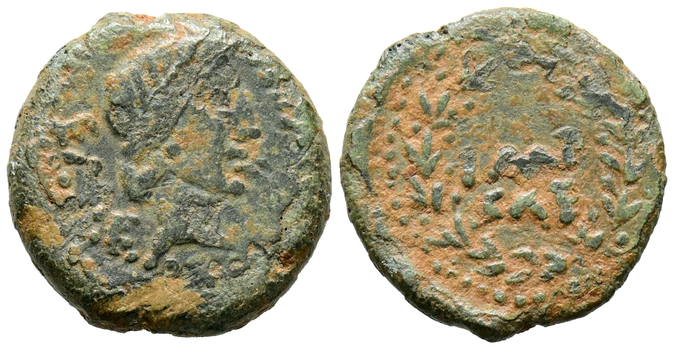 EMERITA AUGUSTA (Mérida). Cuadrante. (Ae. 2,46g/17mm). 22 a.C.-14 d.C. (FAB-1022). Anv: Cabeza femenina a derecha, alrededor leyenda: EME AVGV. Rev: Leyenda: IMP CAE, dentro de láurea. MBC-. Escaso.