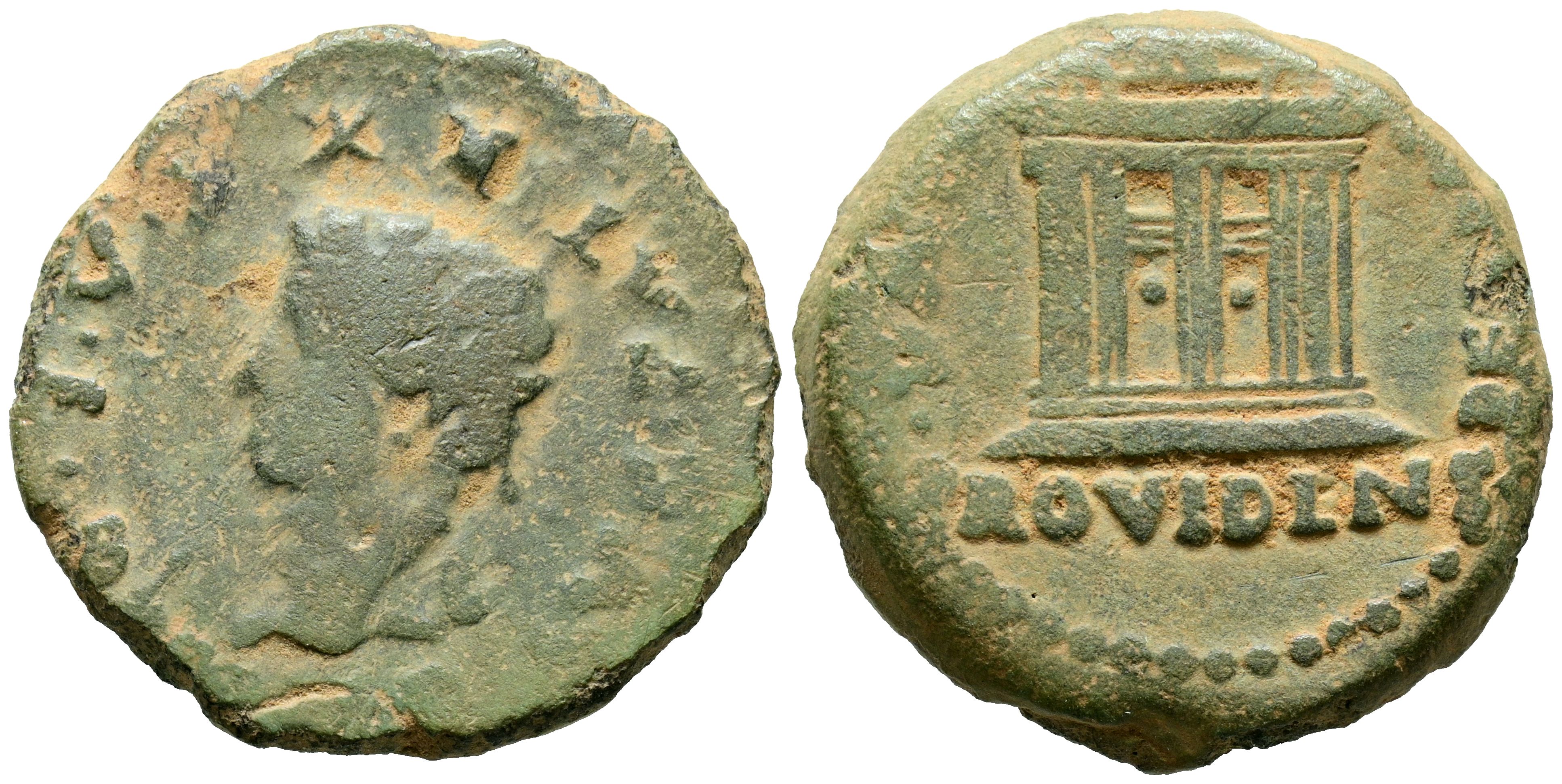EMERITA AUGUSTA (Mérida). As. (Ae. 11,06g/27mm). 14-36 d.C. (ACIP 3401). Anv: Cabeza radiada de Tiberio a izquierda, encima estrella, alrededor leyenda: DIVVS AVG PATER CAE. Altar, alrededor leyenda: PERMI AVG PROVIDENT. MBC-.