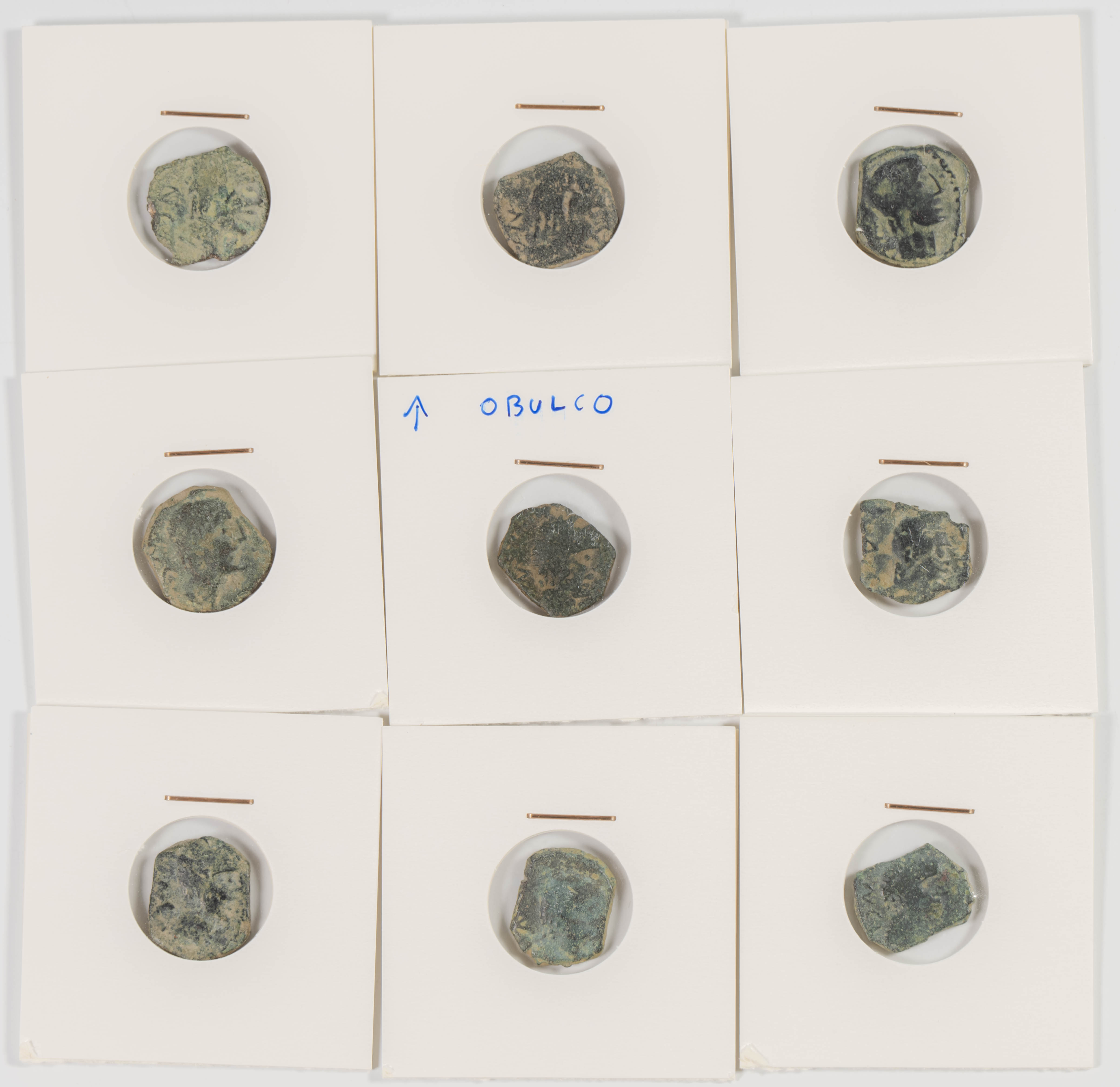 Interesante conjunto formado por 9 semis de la ceca de Obulco. Diferentes medidas y estados de conservación. A EXAMINAR.