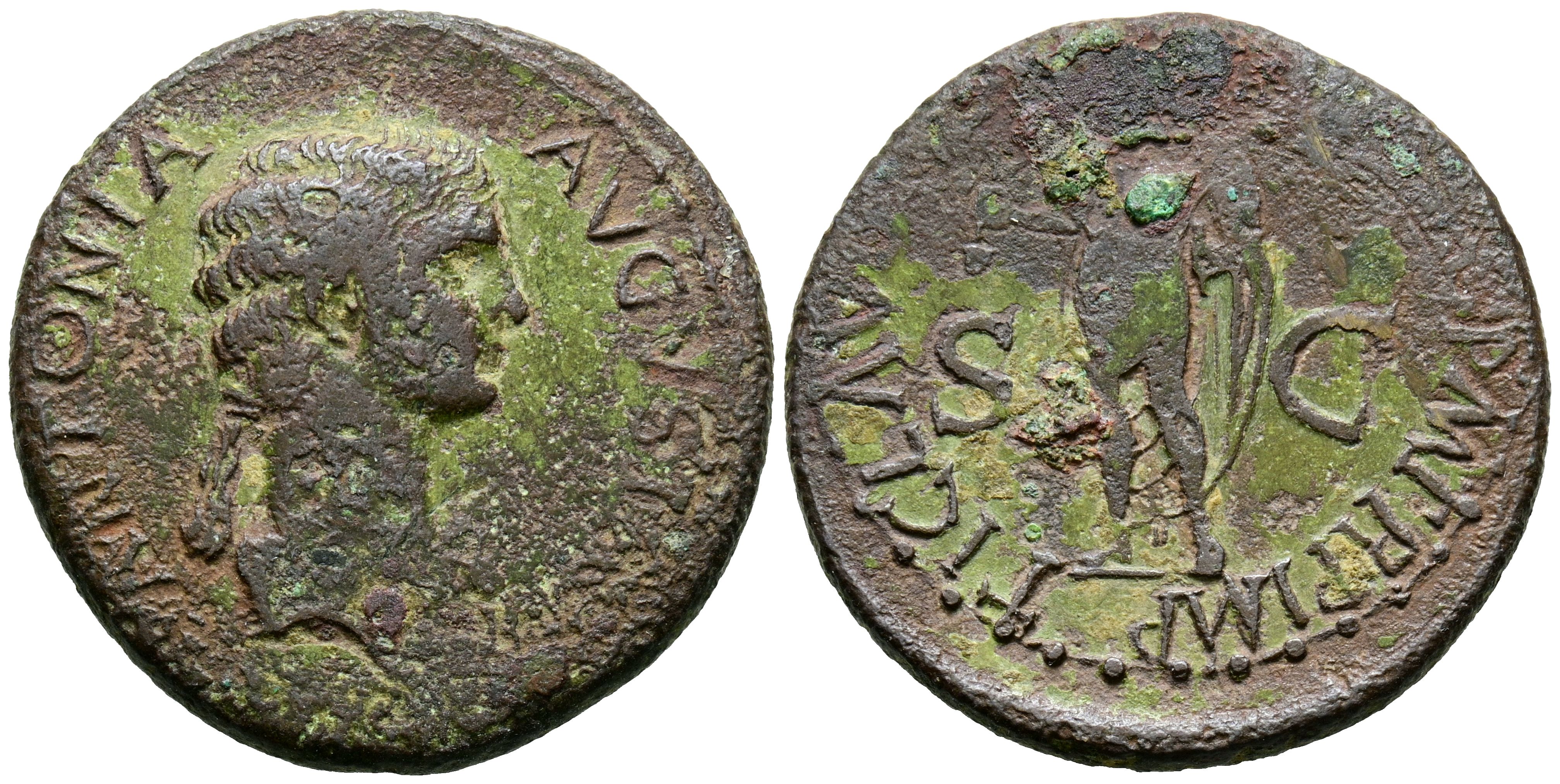 ANTONIA. Dupondio. (Ae. 12,06g/28mm). 41-42 d.C. Roma. (RIC 92). Anv: Busto de Antonia a derecha, alrededor leyenda: ANTONIA AVGVSTA. Rev: Claudio velado y estante a izquierda con el símpulo, en campo: S-C, alrededor leyenda: TI CLAVDIVS CAESAR AVG P M TR P IMP. MBC-.