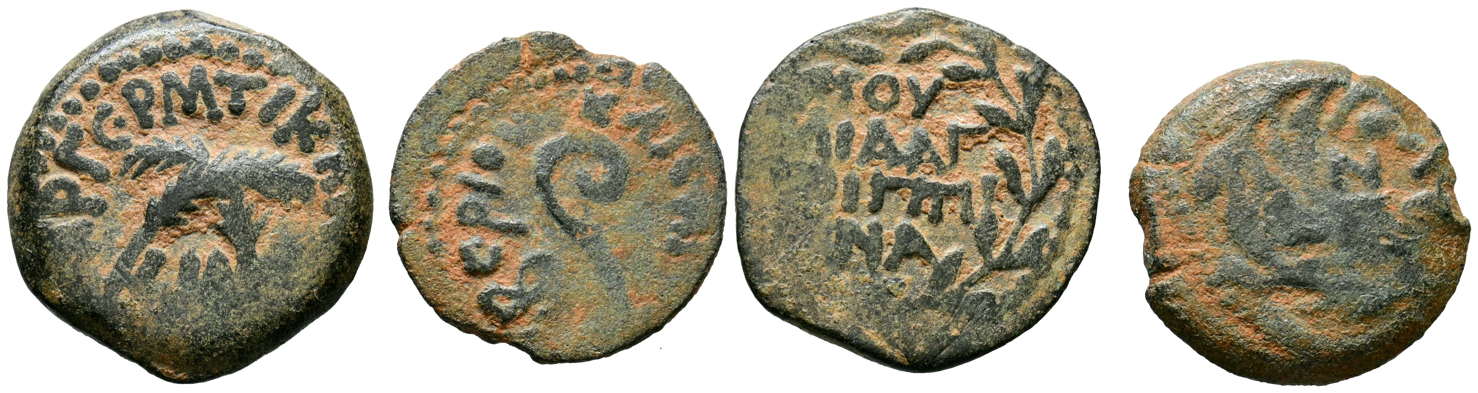 JUDAEA. Pareja de 2 Prutah de los procuradores Poncio Pilato y Antonius Felix. A EXAMINAR.
