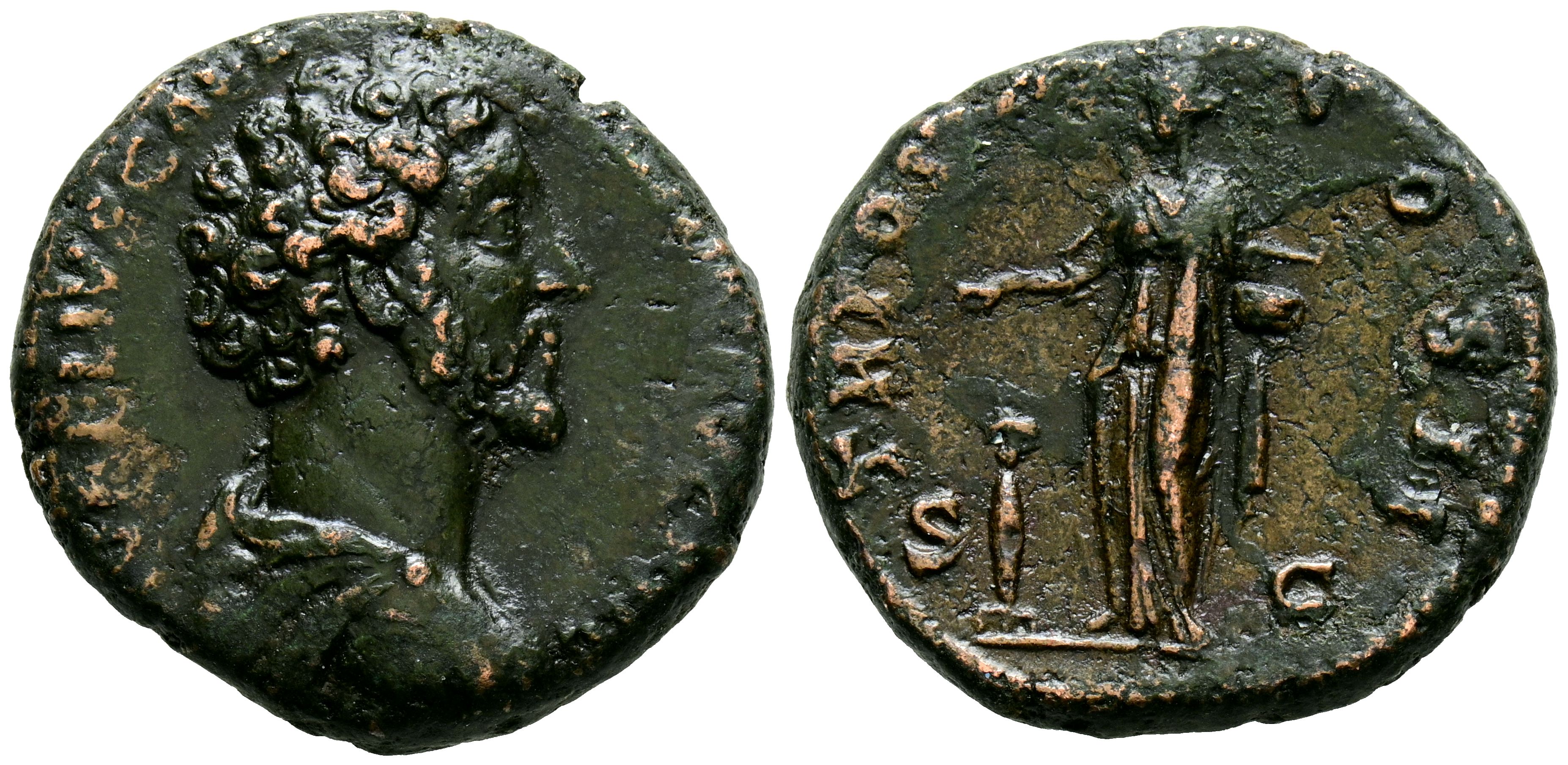 MARCO AURELIO. As. (Ae. 12,34g/26mm). 156-157 d.C. Roma. (RIC 1343a). Anv: Cabeza de Marco Aurelio a derecha, alrededor leyenda: AVRELIVS CAES AVG PII F. Rev: Pietas estante a derecha arrojando incienso en altar y portando caja, entre: S-C, alrededor leyenda: TR POT XI COS II. MBC-. Limpiada.