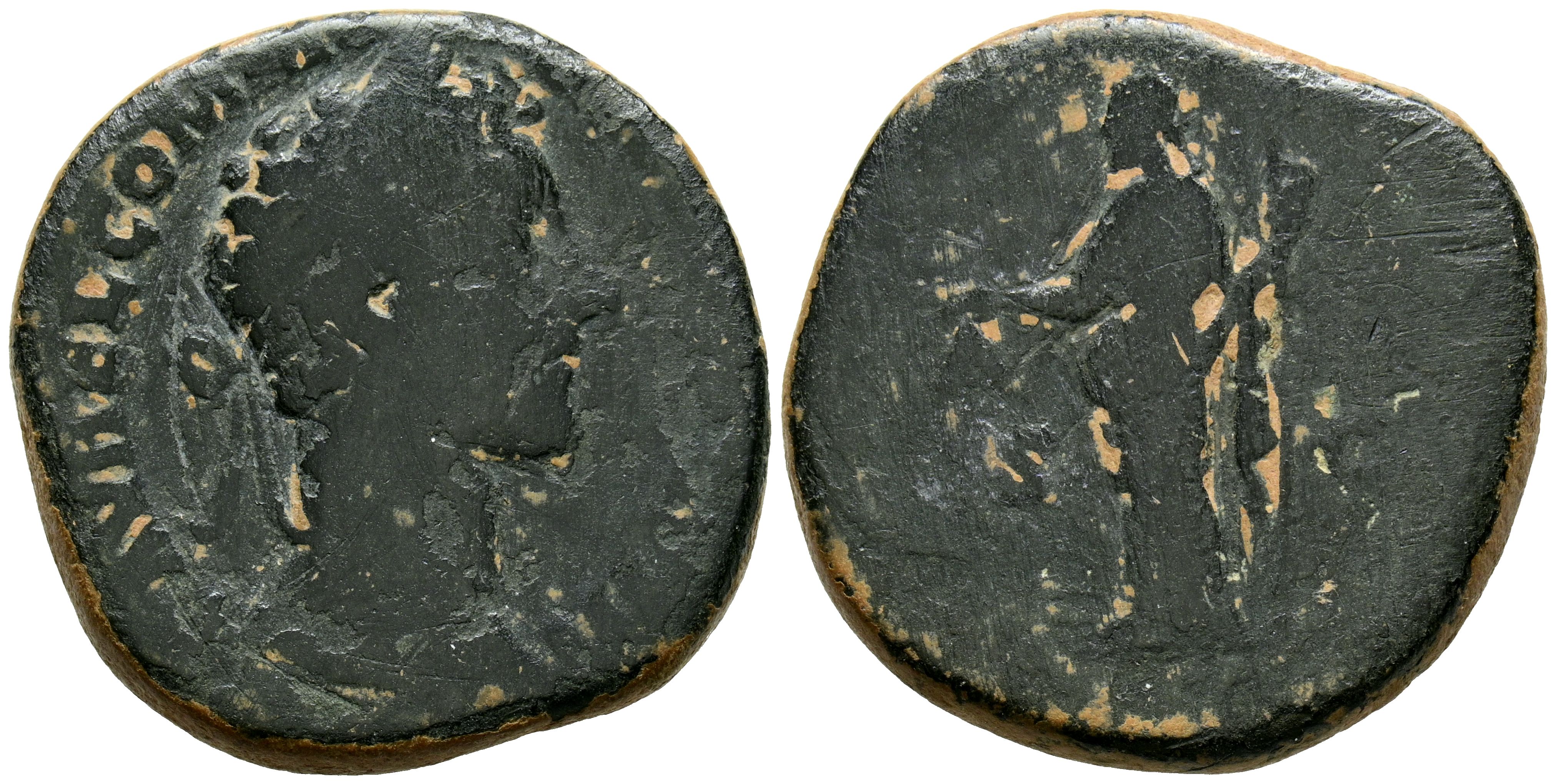 CÓMODO. Sestercio. (Ae. 17,84g/29mm). 178 d.C. Roma. (RIC 1588). Anv: Cabeza laureada de Cómodo a derecha, alrededor leyenda: L AVREL COMMODVS AVG TR P III. Rev: Libertas a izquierda con píleo y cetro, en campo S-C, alrededor leyenda: LIBERTAS AVG IMP II COS P P. BC-.