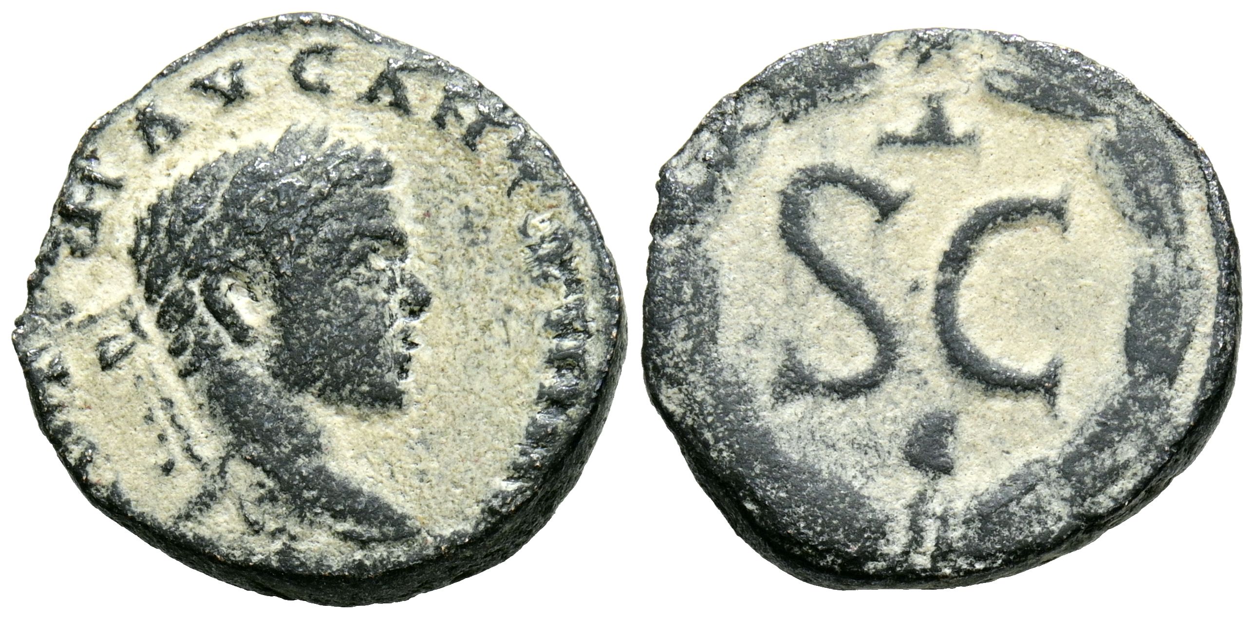HELIOGABALO. Ae18. (Ae. 3,05g/18mm). 218-222 d.C. Seleucis y Pieria, Antioquía. (McAlee 782-783). Anv: Cabeza laureada de Heliogábalo a derecha, alrededor leyenda. Rev: SC, encima A y debajo E, todo dentro de corona de laurel. MBC-.