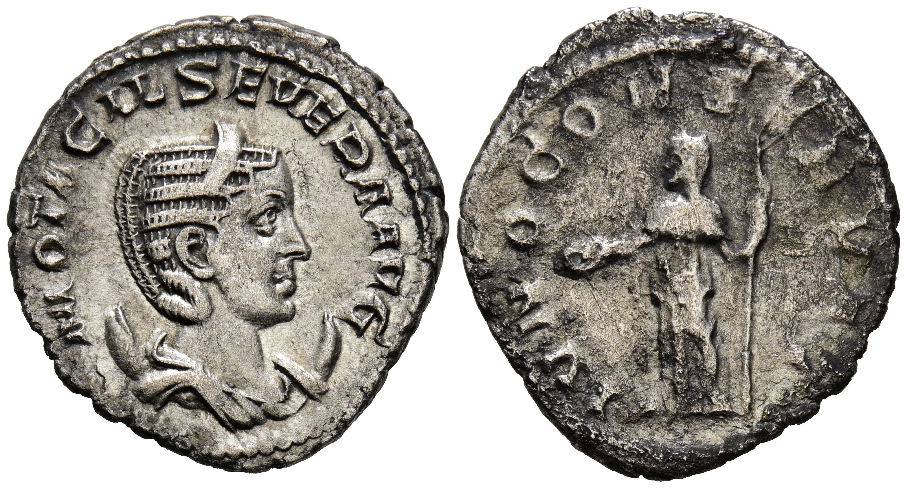 OTACILIA SEVERA. Antoniniano. (Ar. 3,38g/23mm). 244-249 d.C. Roma. (RIC 127). Anv: Busto diademado y drapeado de Otacilia Severa a derecha sobre creciente, alrededor leyenda: M OTACIL SEVER AVG. Rev: Juno estante a izquierda portando patera y cetro, alrededor leyenda: IVNO CONSERVAT. MBC+/BC+.