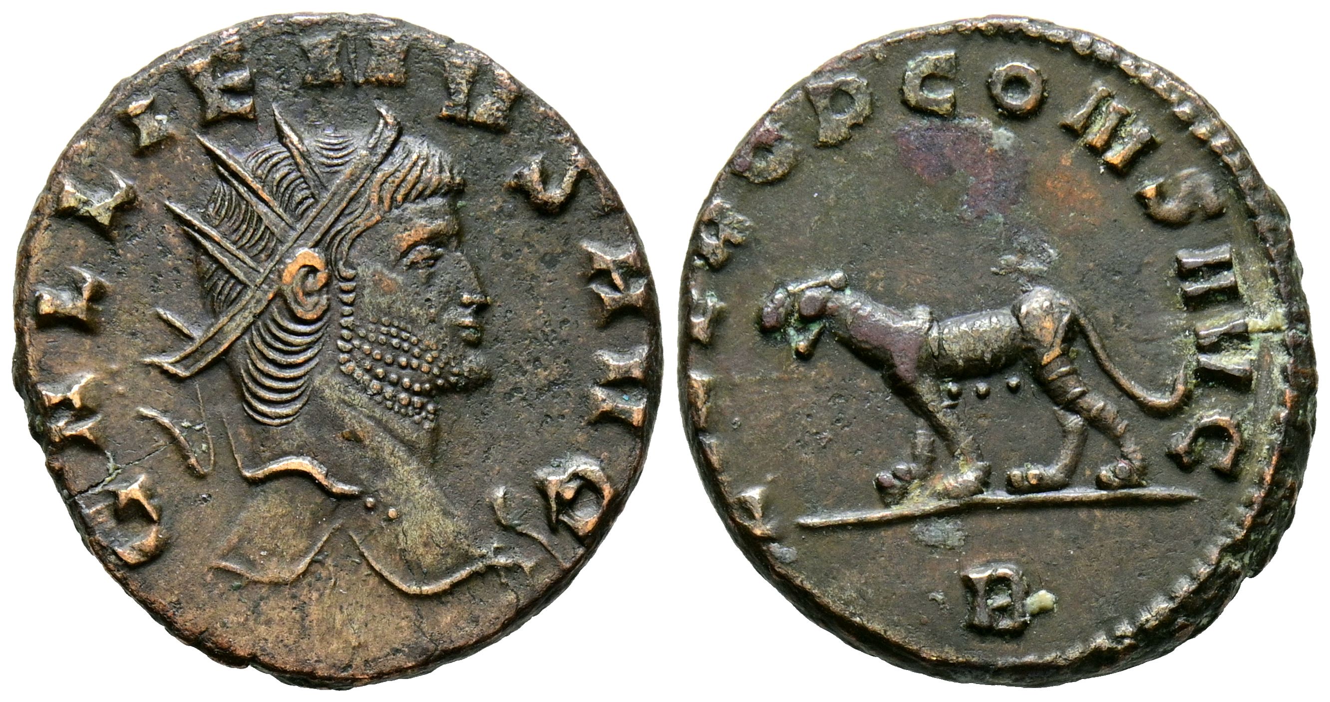 GALIENO. Antoniniano. (Ae. 3,66g/20mm). 260-268 d.C. Roma. (RIC 230). Anv: Cabeza radiada de Galieno a derecha, alrededor leyenda: GALLIENVS AVG. Rev: Pantera avanzando a izquierda, en exergo: B, encima leyenda: LIBERO P CONS AVG. MBC+.