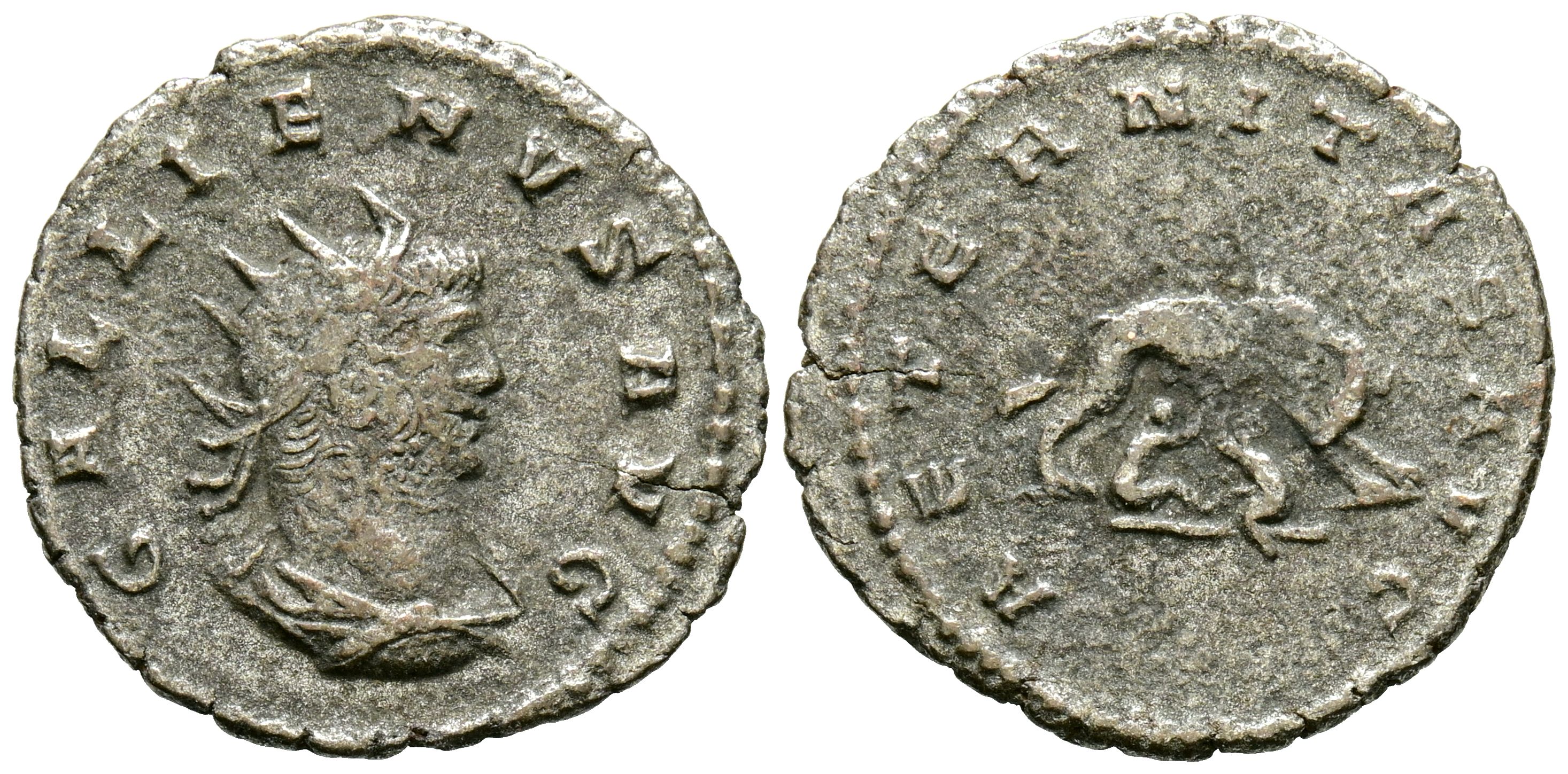 GALIENO. Antoniniano. (Ae. 1,99g/20mm). 253-268 d.C. Antioquía. (RIC 628). Anv: Busto radiado y drapeado con coraza de Galieno a derecha, alrededor leyenda: GALLIENVS AVG. Rev: Loba a izquierda amamantando a los gemelos Rómulo y Remo, alrededor leyenda: AETERNITAS AVG. MBC.
