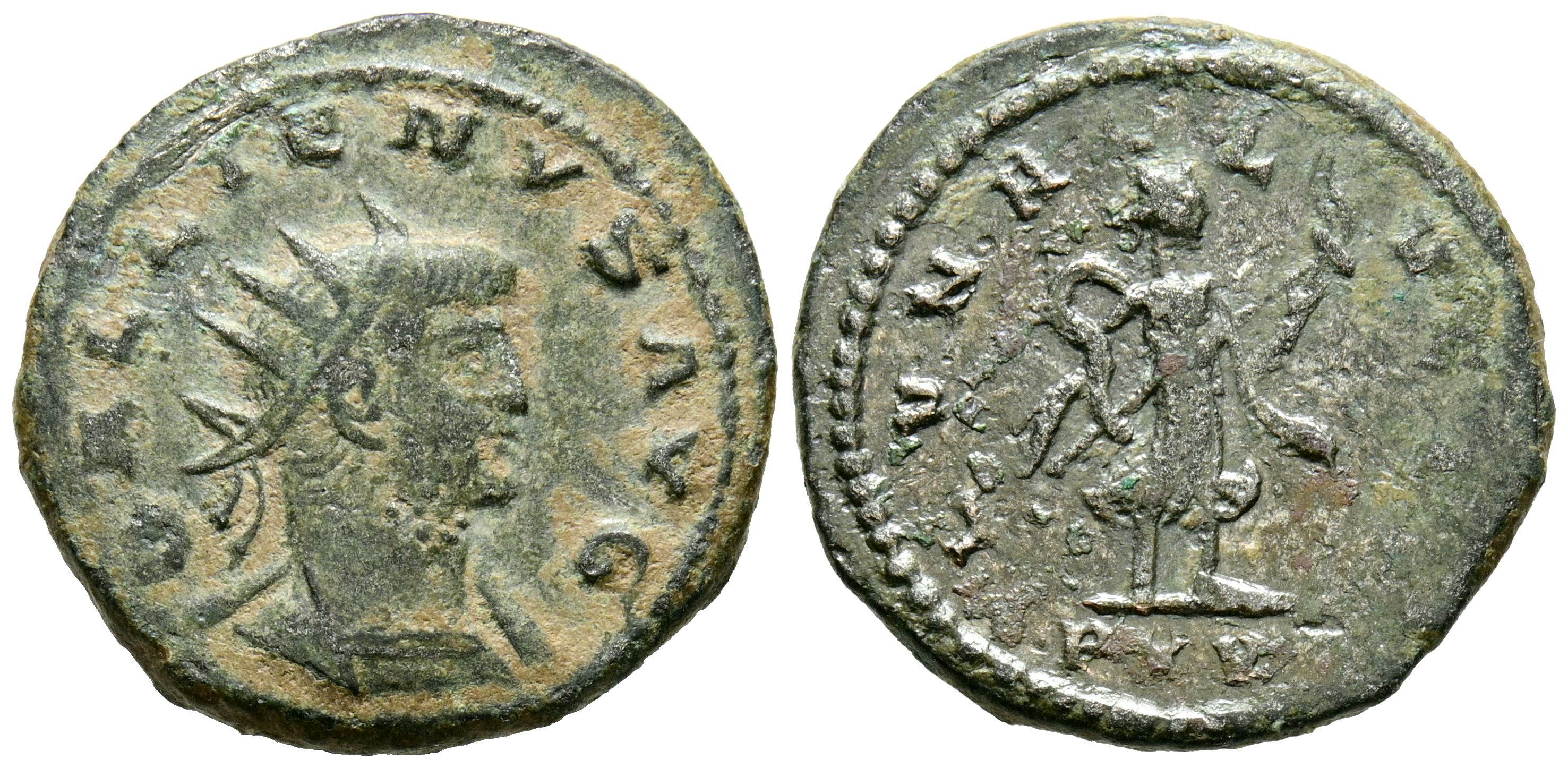GALIENO. Antoniniano. (Ae. 3,83g/20mm). 253-268 d.C. Antioquía. (RIC 646). Anv: Busto radiado de Galieno a la derecha, alrededor leyenda: GALLIENVS AVG. Rev: Luna Lucifera estante a derecha, sosteniendo una larga antorcha con ambas manos, en exergo: PXV, alrededor leyenda: LVNA LVCIF. MBC-/BC.