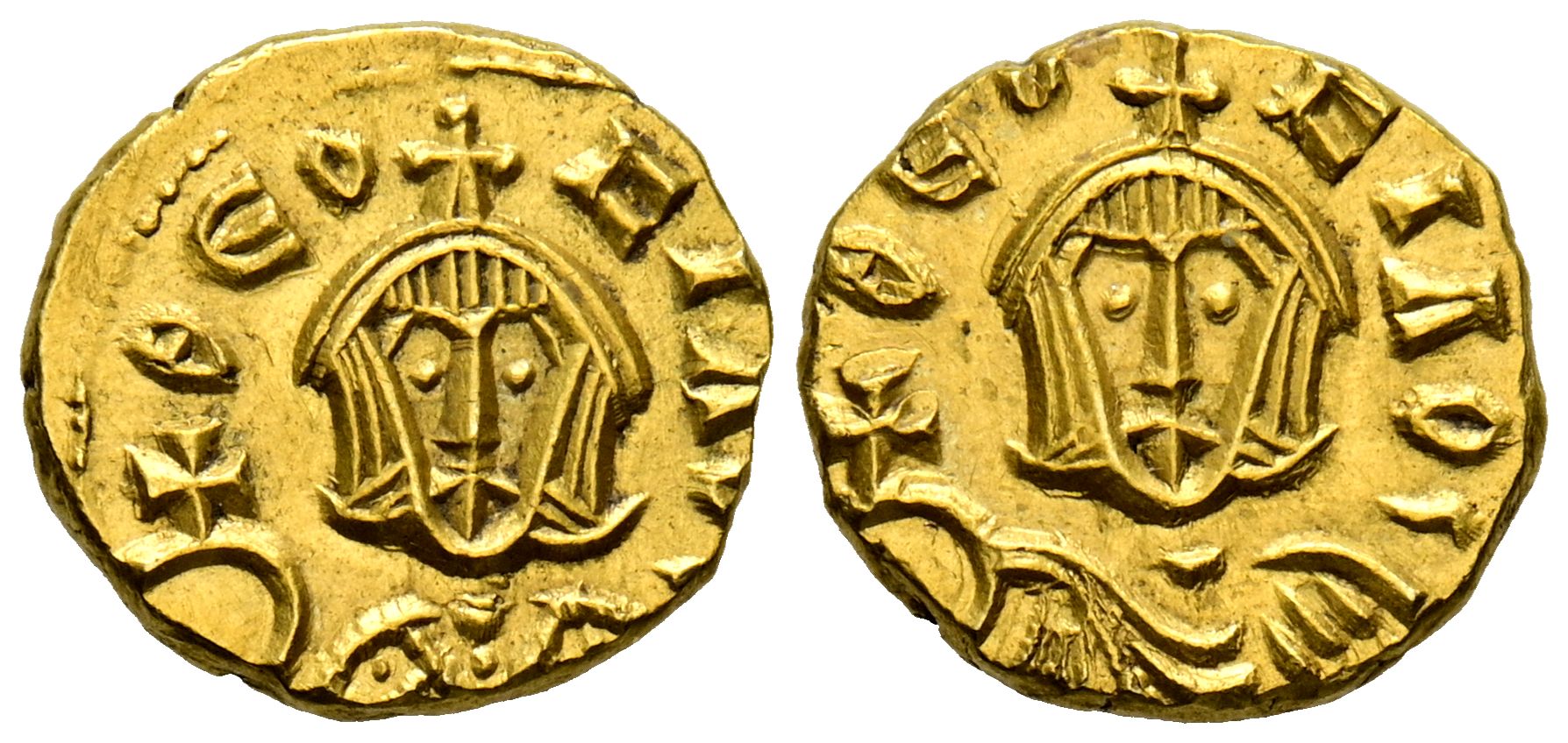 TEOFILO. Semissis. (Au. 1,75g/16mm). 831-832 d.C. Siracusa. (Seaby 1674). Anv: Busto coronado de Teófilo de frente portando globo crucífero, alrededor leyenda: ΘEOFILOS. Rev: Busto de frente de teófilo portando cruz, alrededor leyenda: ΘEOFILOS. EBC+. Bonito ejemplar, escaso así.