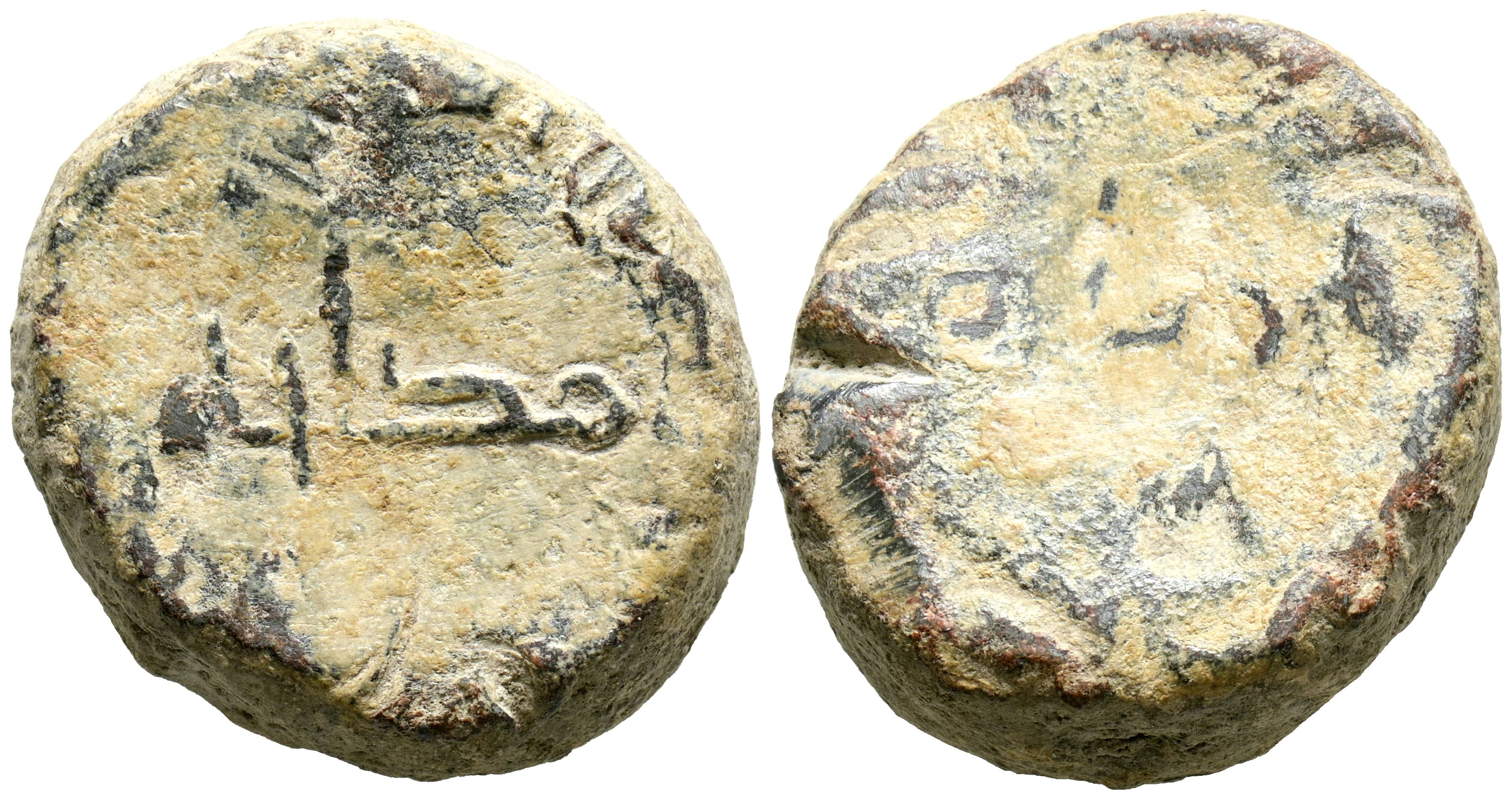 PERIODO DE CONQUISTA. Sello/Pacto de paz. (Pb. 33,79g/26x9mm). 711-756 d.C. (Inédito, variante de lugar no recogido en Senac/Ibrahim 2017). Anv: مصٰلحة / Musālahat (Pacto de paz). Rev: ¿ماة? / Lugar desconocido. MBC+. Muy raro e interesante ejemplar.
