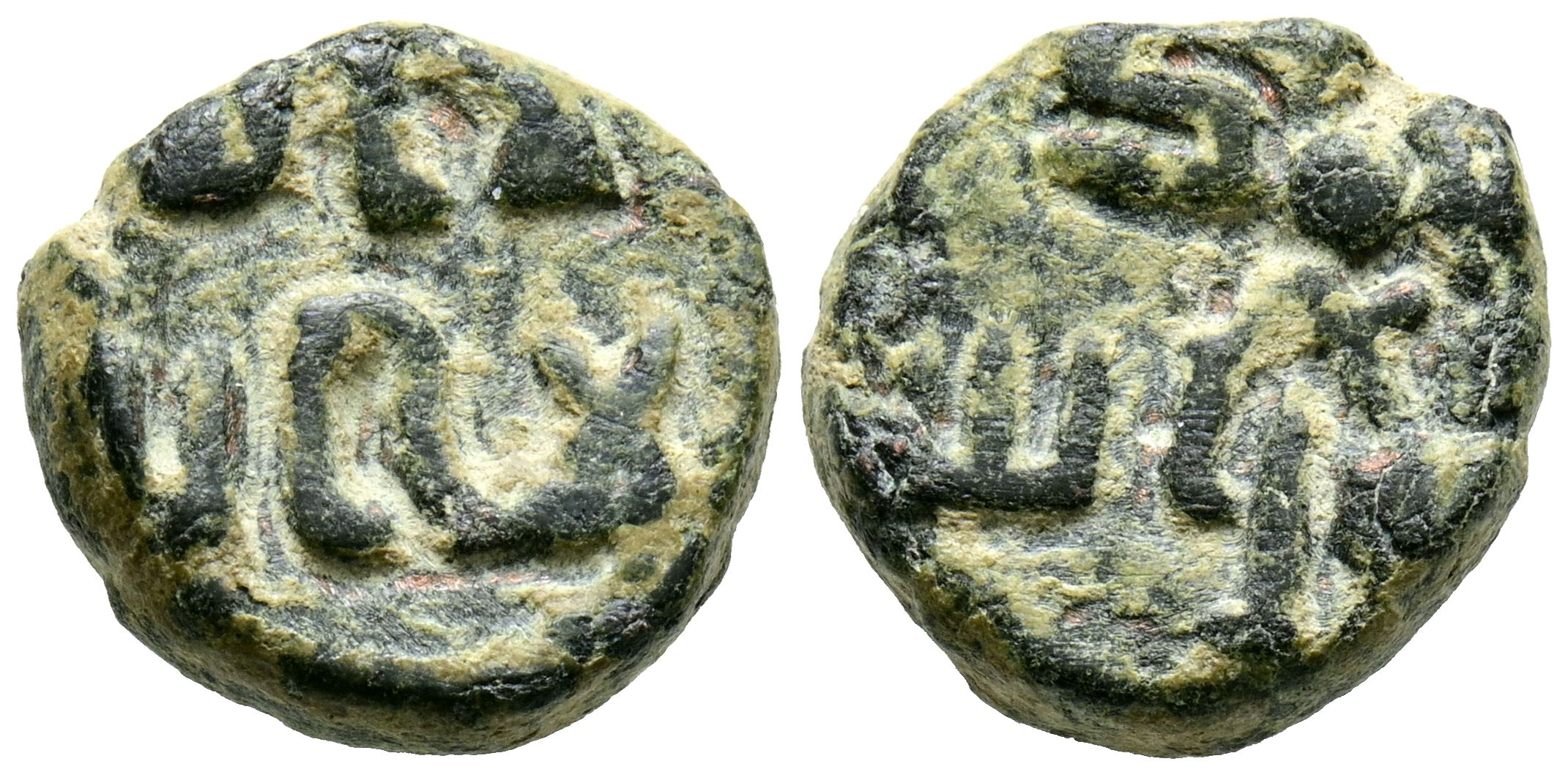 EMIRATO DEPENDIENTE DE CÓRDOBA, PERIODO DE GOBERNADORES. Anónimo. Felús. (Ae. 2,11g/15mm). S/D. (Frochoso II-c). Anv: لاالله/ لااله ا. Rev: سول الله / محمدر, con adorno de forma triangular. MBC. Escaso y mas así.