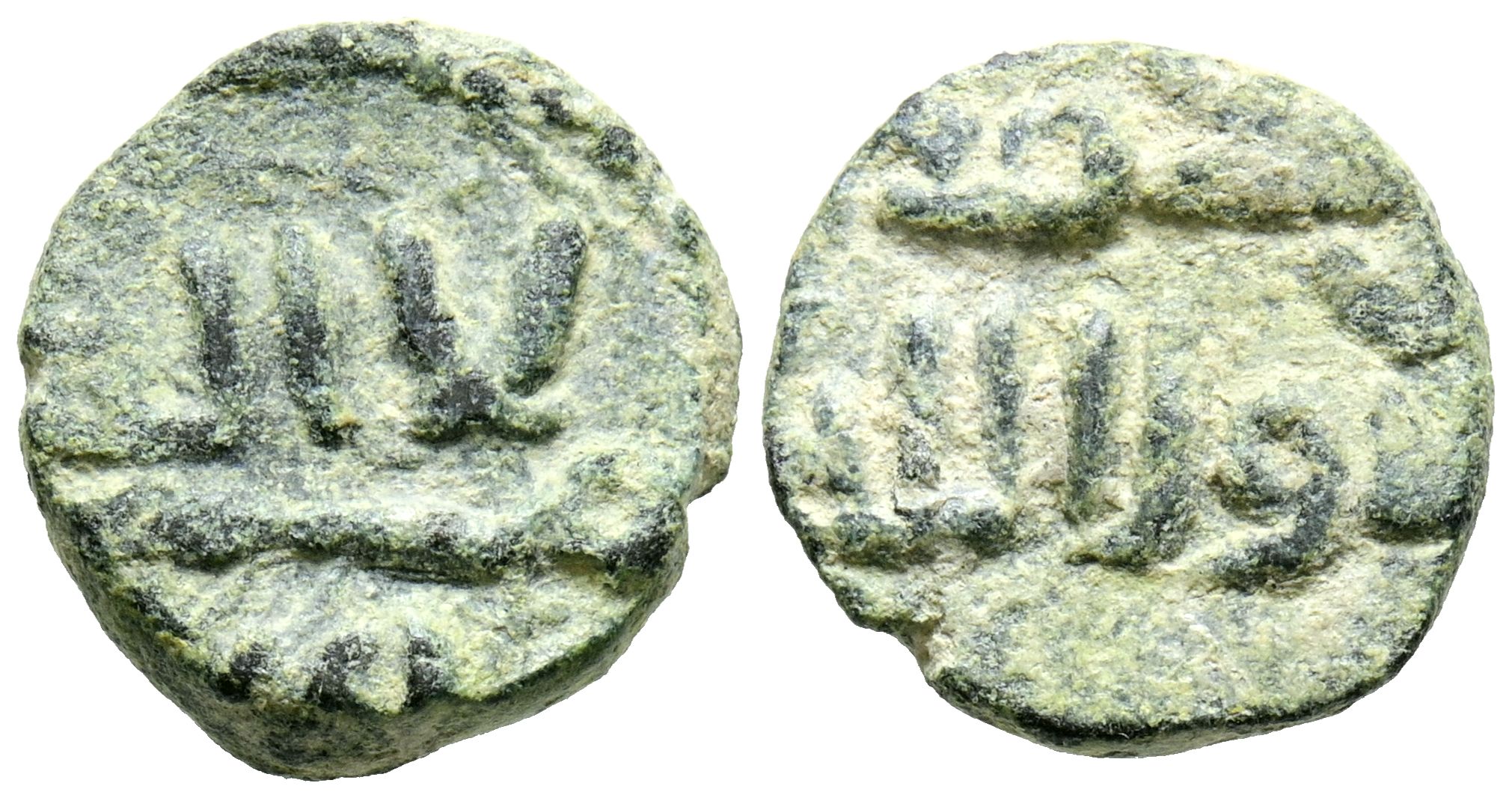 EMIRATO DEPENDIENTE DE CÓRDOBA, PERIODO DE GOBERNADORES. Anónimo. Felús. (Ae. 2,23g/14mm). S/D. (Frochoso II-e). Anv: لاالله/ لااله ا, adorno serpenteante. Rev: سواالله / محمدر, adorno de tulipan. MBC+. scasa.