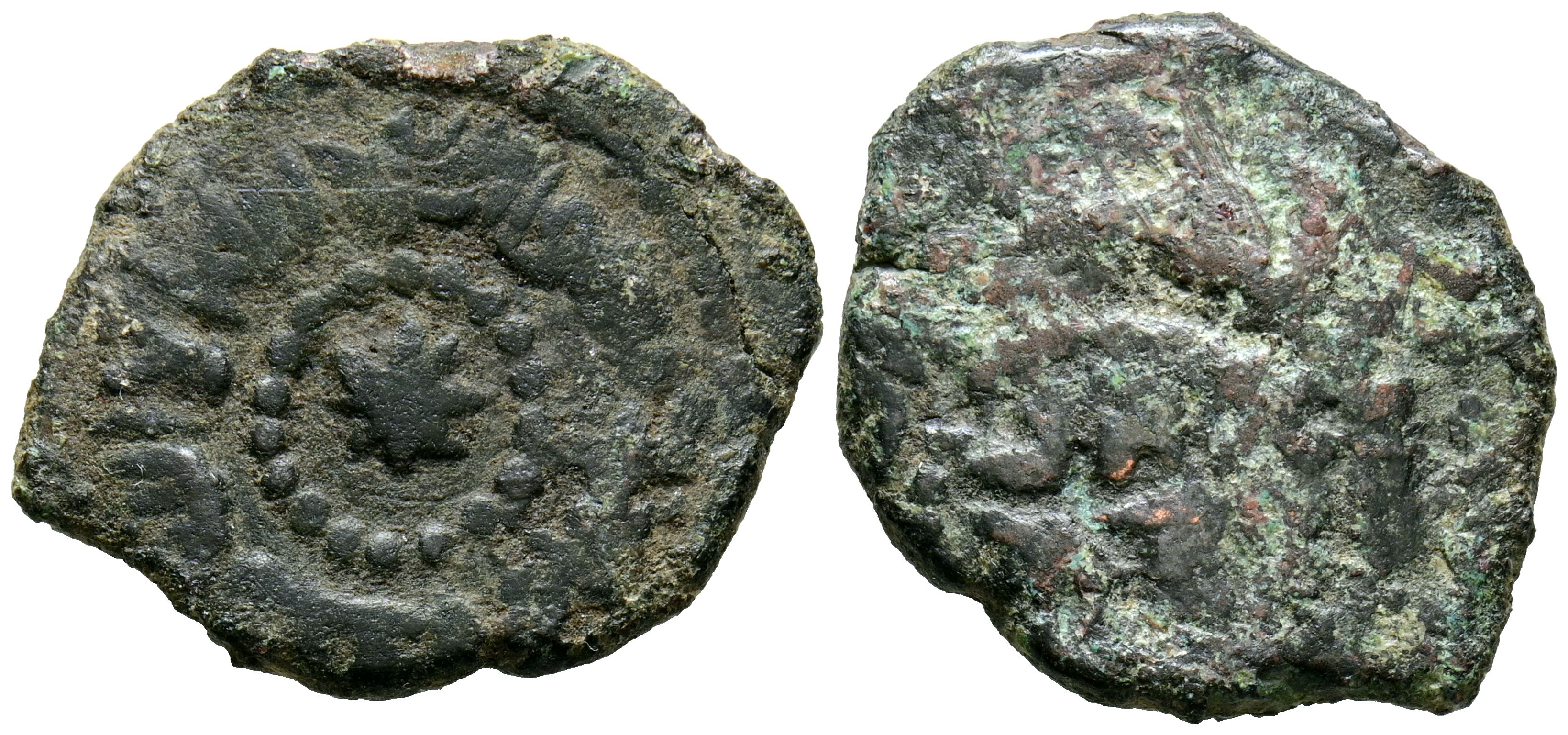 EMIRATO DEPENDIENTE DE CÓRDOBA, PERIODO DE GOBERNADORES. Anónimo. Felús. (Ar. 5,00g/25mm). S/D. al-Ándalus / الاندلس. (Vives 44; Frochoso XVII-c). Anv: Estrella de 8 puntas dentro de gráfila circular, alrededor Profesión de Fé,'Sahada'. Rev: ندلس/ الا, dentro de gráfila circular, alrededor 'Basmala'. MBC/RC. Cospel irregular.