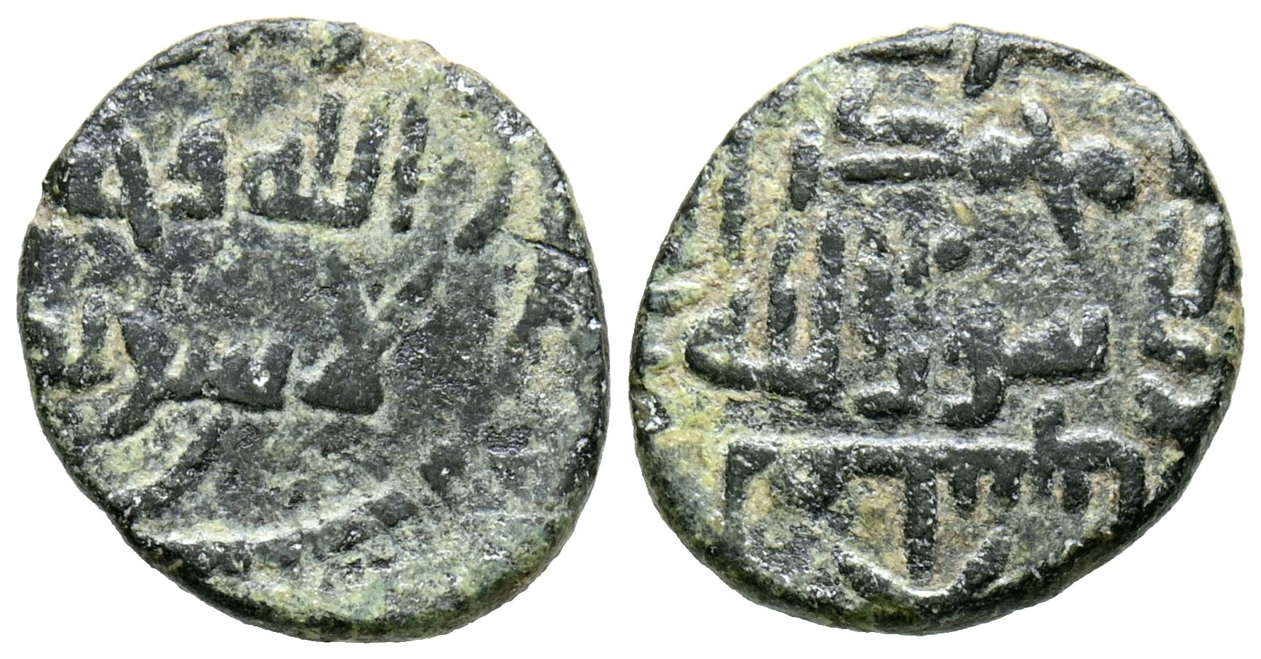 EMIRATO DEPENDIENTE DE CÓRDOBA, PERIODO DE GOBERNADORES. Anónimo. Felús. (Ar. 4,36g/17mm). Sin fecha. al-Ándalus / الاندلس. (Frochoso XVIII-a). Anv: Profesión de Fé,'Sahada'. Rev: سول الله / محمدر, alrededor orla cuadrada: ضرب هذا الفلس الاندلس. MBC+. Escaso y mas así.