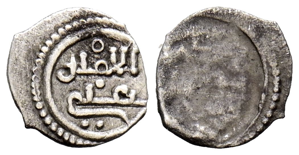 ALMORÁVIDES, Alí ibn Yusuf (500-537H). ¿1/16 Quirate?. (Ar. 0,10g/8mm). S/D. (Vives 1690; Hazard 934; Benito Ca23, como 1/2 Quirate). Anv: En dos líneas: الامير/ علي. Rev: Anepígrafo. MBC. Muy rara.