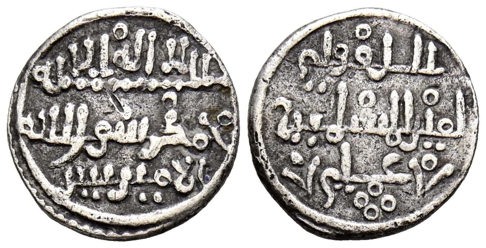 ALMORAVIDES, 'Ali ben Yusuf con Sir como heredero (522-533H). Quirate. (Ar. 0,81/11mm). (Vives1771; Benito Ce10). Anv: 'Shahada' en tres líneas y mención al heredero. Rev: Presenta a Ali con título de Amir al-Muslimin, arriba la expresión: Allah Wali / الله ولي (Dios ''es el'' guardián). MBC. Ex Jesus Vico, Subasta 166 (22/2/2023) Colección Gaspariño, Lote 634.
