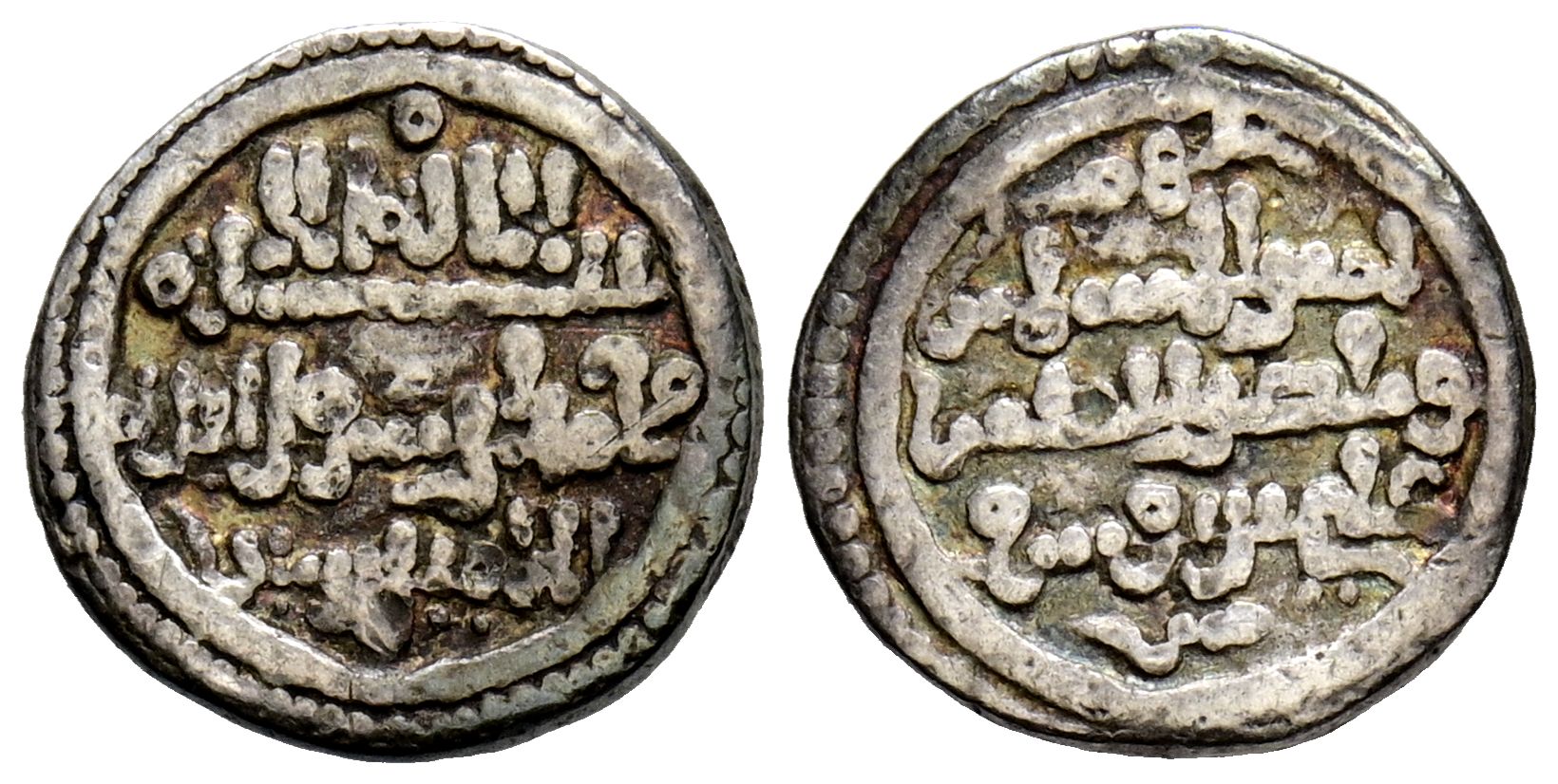 ALMORÁVIDES, Alí ibn Yusuf. Quirate. (Ar. 0,86g/11mm). 522-533H. (Vives 1774; Benito Cf2). Citando al Emir Sir en AI. y los titulos Amir al-Muslimin y Nasir al Din. MBC+. Pátina irisada