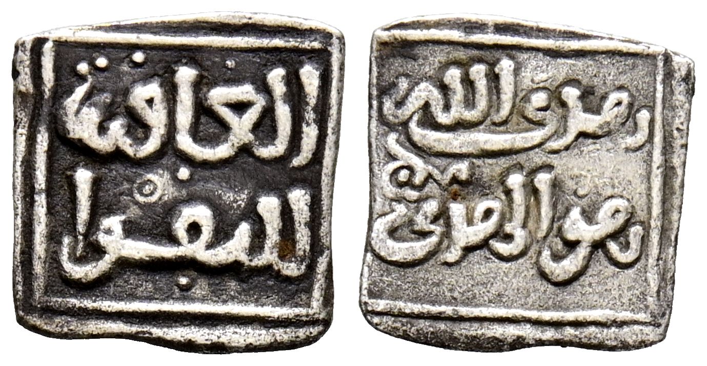 ALMOHADES, Anónimo. 1/4 Dirham. (Ar. 0,37g/9mm). (Vives 2209, como Nazarí; Medina 203a; Hohertz 636). Anv: هدى الله / هو الهدى. (La guía de Allah / es la guía). Rev: العا قبة / التقوا. (La recompensa del más allá / pertenece a los devotos). MBC.