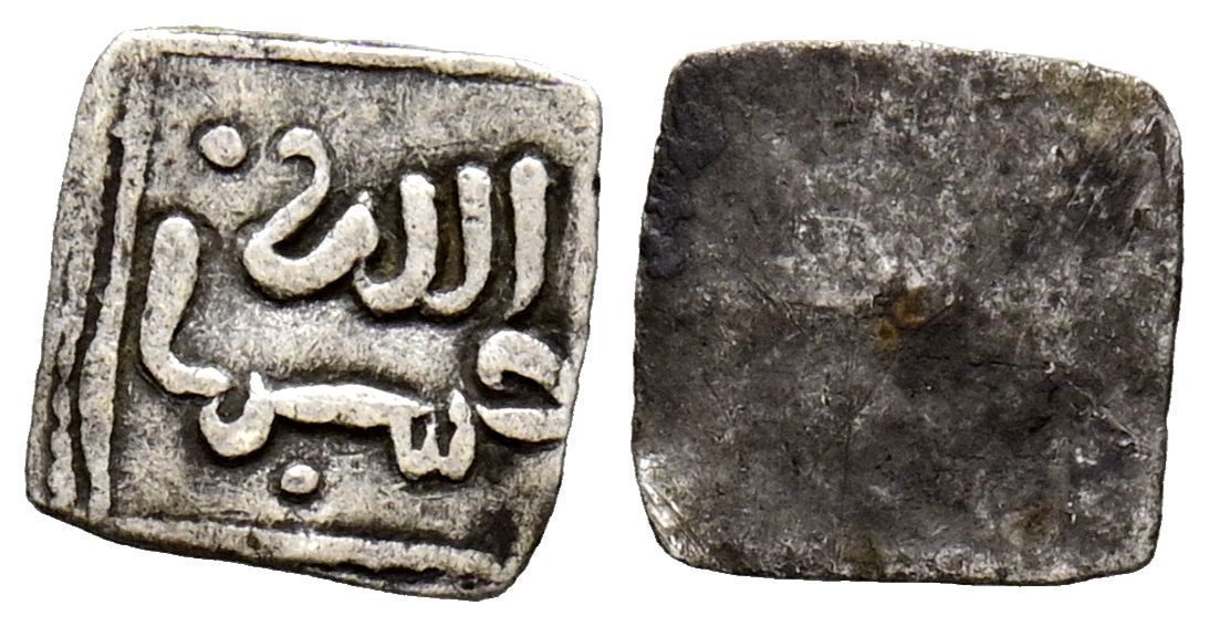 ALMOHADES, Anónimo. 1/8 Dirham. (Ar. 0,11g/7mm). S/D. (Hohertz 645; Medina 203c, variante sin ceca). Anv: الله / حسبنا. (Dios me basta). Rev: Anepígrafo. MBC. Rara.