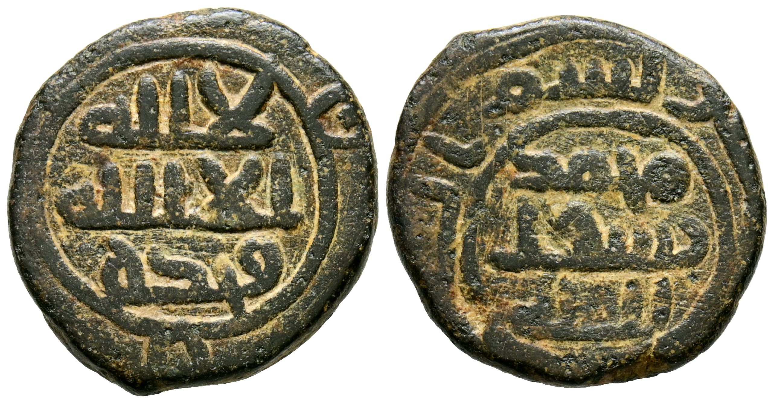 CALIFATO OMEYA DE DAMASCO. Anónimo. Felús. (Ae. 4,05g/19mm). Época de post-reforma, posiblemente Damasco. Leyendas religiosas en ambas áreas. MBC. Interesante ejemplar
