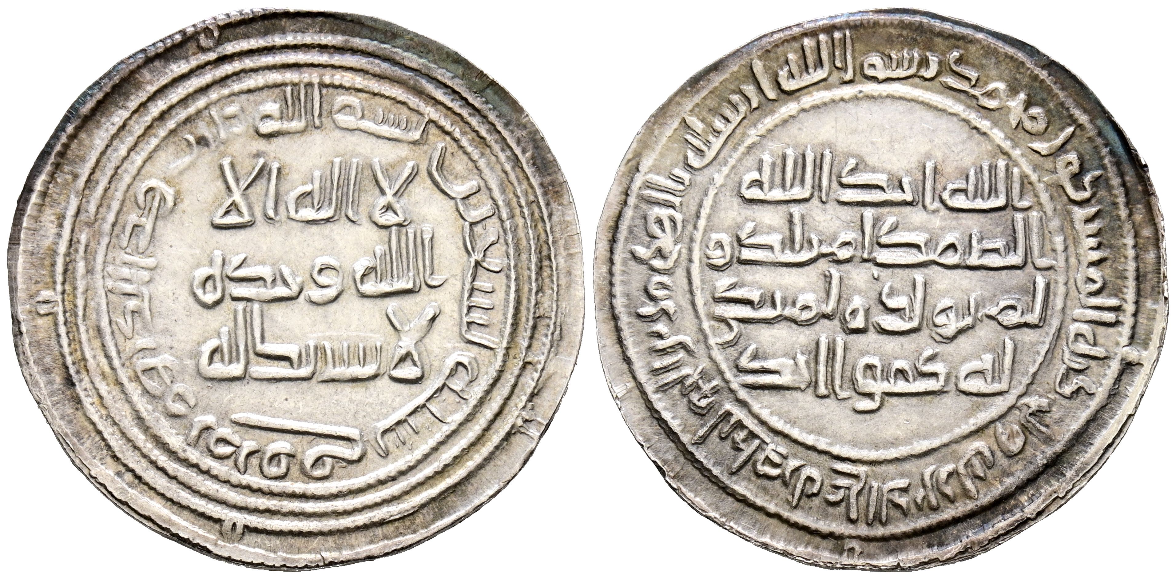 CALIFATO OMEYA DE DAMASCO. Al-Walid Ibn 'Abd al-Malik. Dirham. (Ar. 2,96g/27mm). 90H. Marw/ مرو. (Walker 490; Album 128; Klat 587b). EBC. Escasa. Restos de brillo original.