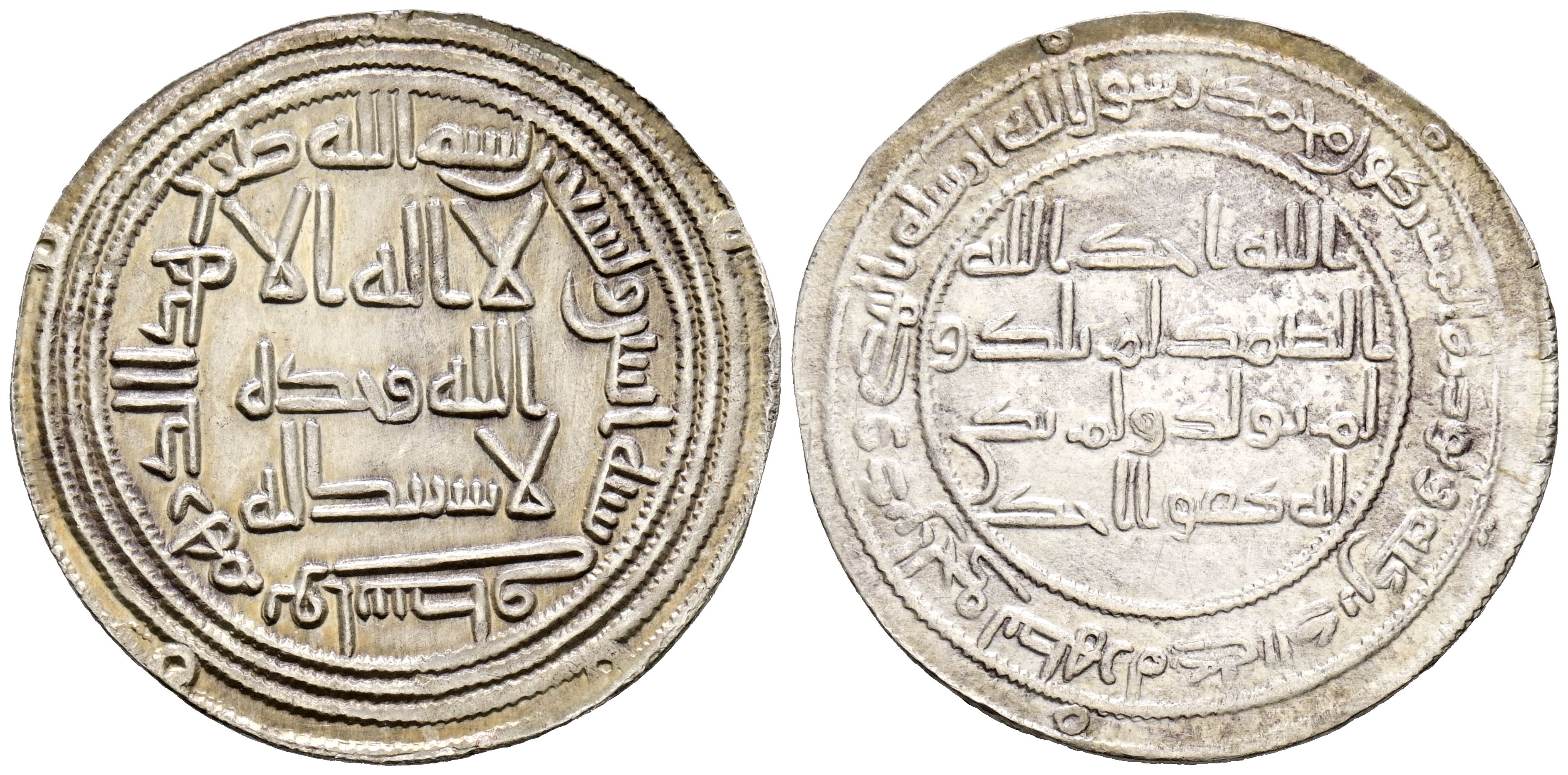 CALIFATO OMEYA DE DAMASCO. Al-Walid Ibn 'Abd al-Malik. Dirham. (Ar. 3,03g/26mm). 92H. Wasit / واسط. (Walker 536; Álbum 128; Klat 687). EBC-. Restos de brillo original. Ligero tono.