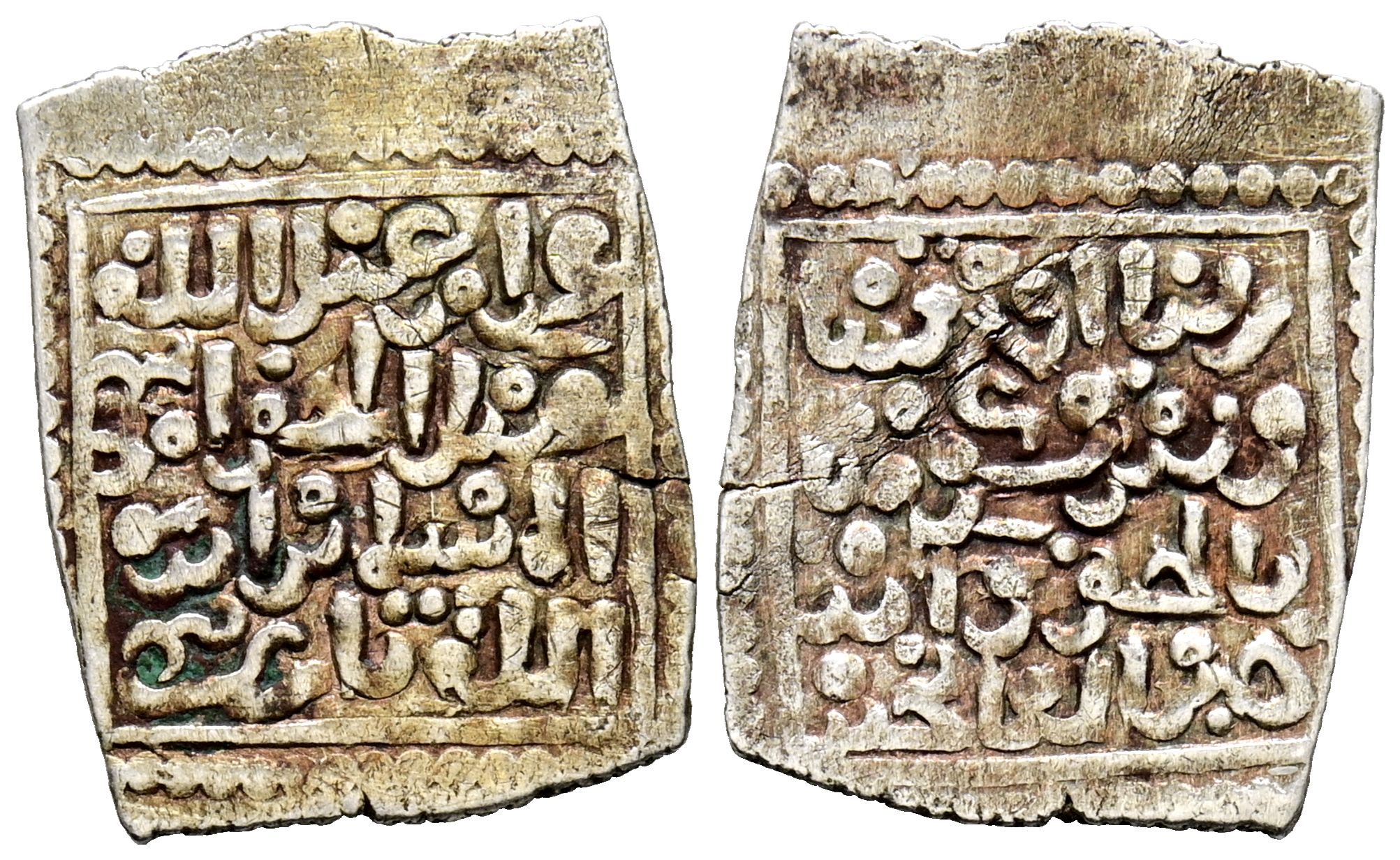 MERINÍES. 'Abd Al-Haqq II. 1/2 Dirham. (Ar. 0,72g/17mm). 823-869H. Taza / تازى. (Hohertz 828, marcado como RRR). Anv: Sura Al-A'raf, versículo 89. Rev: Presenta al sultan 'Abd Al-Haqq / عبد الحق, con título de amir al-Muslimín y en la última línea la ceca. MBC. Precioso tono dorado. Muy rara.