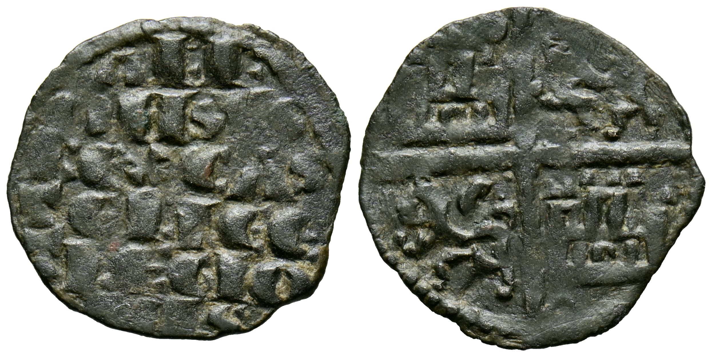 ALFONSO X (1252-1284). Dinero alfonsí ''de la 1º guerra de Granada''. (Ve. 0,71g/17mm). Marca de ceca doble aro. (Imperatrix A10:4.67; FAB-245). Anv: Leyenda en seis líneas: ALF/ONSVS/REX CAS/TELLE E/T LEGIO/NIS. Rev: Cuartelado de castillos y leones, con roeles en 1º y 4º cuadrante. MBC-.
