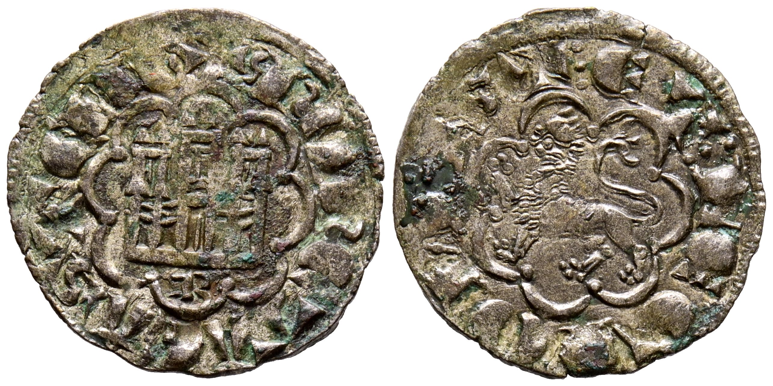 ALFONSO X (1252-1284). Blanca Alfonsí (de la 2º Guerra de Granada). Burgos. (Ve. 0,89g/18mm). (Imperatrix A10:11.6; FAB-263 como Novén). Anv: Castillo y debajo B dentro de gráfila lobular, alrededor leyenda: MONETA CASTELLE. Rev: León rampante a izquierda dentro de gráfila lobular, alrededor leyenda: ET LEGIONIS. MBC+.