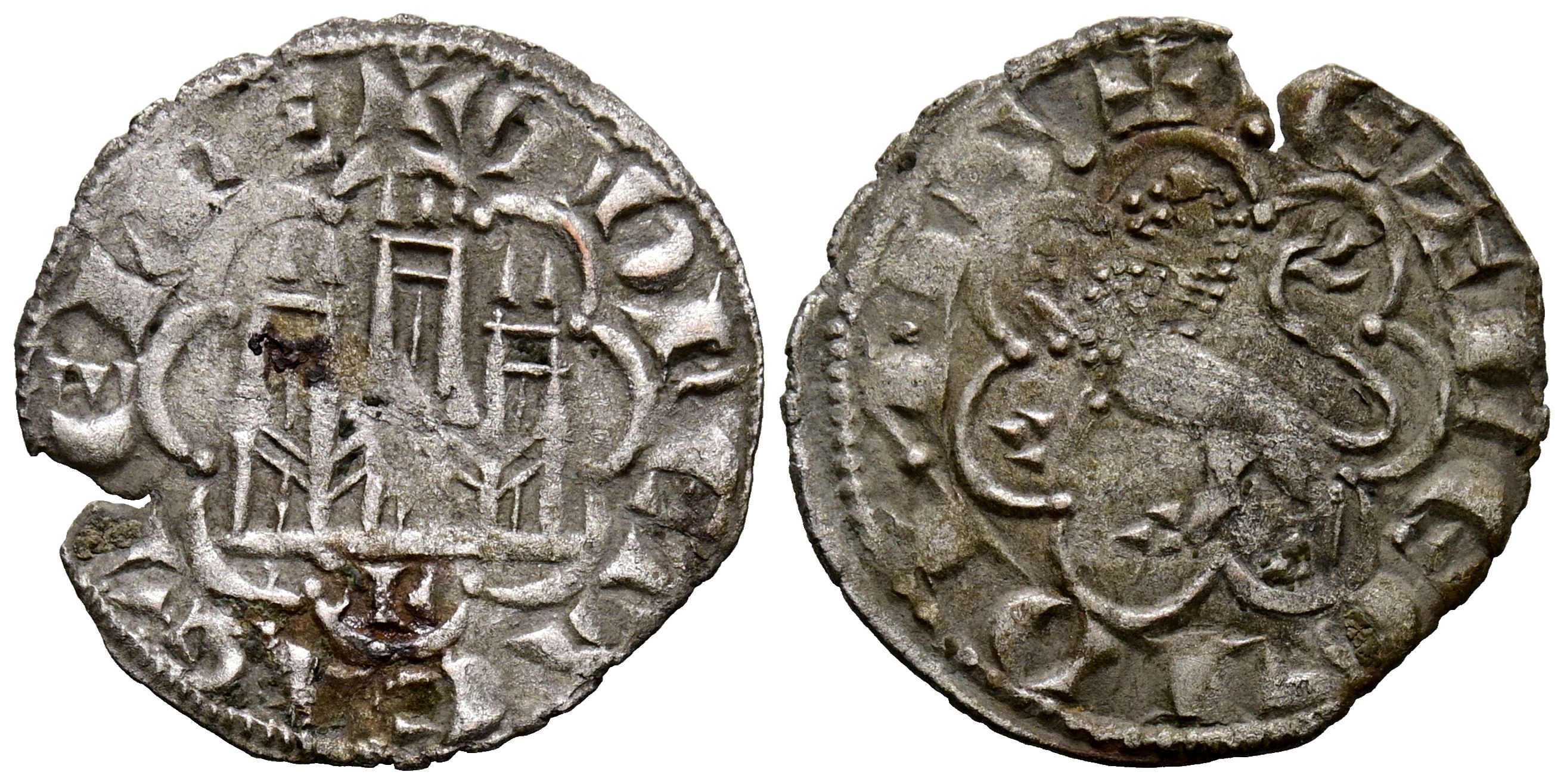 ALFONSO X (1252-1284). Blanca Alfonsí (Novén). (Ve. 0,65g/18mm). León. (Imperatrix A10:11.22; FAB-267.1). Anv: Castillo y debajo L dentro de gráfila polilobular, alrededor leyenda: MONETA CASTELLE. Rev: León rampante a izquierda dentro de gráfila lobular, alrededor leyenda: ET LEGIONIS. MBC. Leve oxidación en anverso.